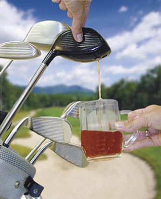 Here's a cool gift idea for any thirsty golfer or anyone who gets talked into playing golf with them, the cool new Club Champ Electronic Drink Caddie. There are similar camouflaged golf club drink dispensers that have simple manual pump types, but this one is electronic and dispenses your secret booze, water, coffee, etc. at the push of a button! What type of drinks are you going to smuggle onto the golf course?