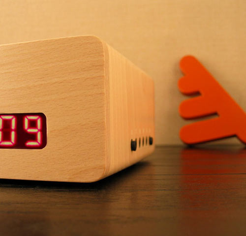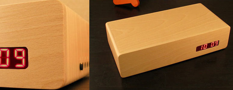 The Furni Gator SE - Wooden Alarm Clock is an alarm clock without all the usual bells & whistles. It's just a simple alarm clock made from beech wood with a bright red LED readout. Finally, an alarm clock design that blends in nicely with the décor, instead of the usual music-phone-supercomputer-glowing-plastic monstrosity that happens to have a clock. I love this alarm clock, simple, wooden, modern, stylish and very, very cool.