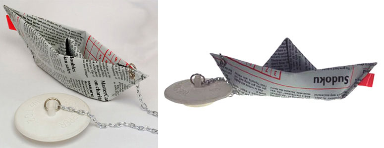 Looking for a cool new drain stopper for your sink or tub? The Newspaper Boat Drain Stopper is probably the coolest one you'll find. Just plug the stopper in your drain, fill the tub and watch as the little paper boat floats rights to the surface.