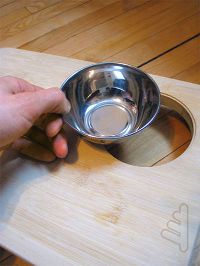Designer Furni's new Miller Bamboo Cutting Board is not only a cool affordable cutting board, but it is also very eco-friendly as well. The board itself is made from bamboo which is a very renewable resource and extremely fast growing (up to 3 feet per day!), is 16% harder than maple and absorbs very little moisture. Even better, the Miller Bamboo Cutting board has interchangeable inset stainless steel preparation bowls that sit flush with the board to prevent damage to your knife while you're slicing, dicing and chopping away and non-slip rubber feet so the board doesn't get away from you. I really love the little built-in bowls to keep everything separated.