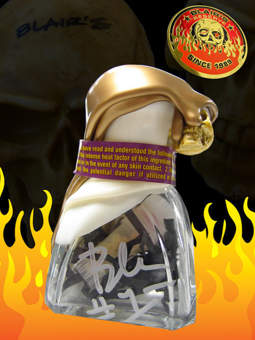 What's cool, er hot, about Blair's 16 Million Reserve is it's collectibility. There were only 999 bottles ever offered and they're all numbered and signed by creator, Blair Lazar. The capsaicin vial is packed inside a Blair's reserve bottle that is then sealed shut with white and gold wax.