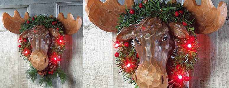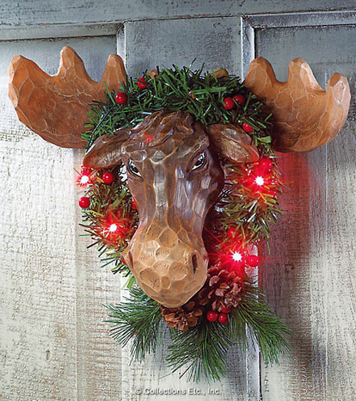 I don't know if I would hang Merry Christmoose on my front door, but he will definitely be going on one of them, because reindeers are out and moose are all the rage this year! Merry Christmoose is a hand-carved style polyresin moose bust surrounded by a wreath of greenery, lights, pinecones and berries and will perfectly compliment a set of Marty Moose - Moose Mugs. I suddenly have a taste for eggnog.
