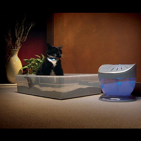 Simply fill up the unit with water, flip it on and watch as the vortex cleaning action mixes the water with incoming air at 2800 rpms and releases an intense rainforest mist. You can also add in different 100% natural botanical scent solutions such as citrus, lime or vanilla to freshen the air better than most air fresheners ever could. My favorite part, that will probably put me to sleep at my desk, is the soft blue light that you can turn on that illuminates the smooth swirling waters. Now it's not exactly an air purifier, but it is the perfect solution to freshen, revitalize and naturally humidify the air in your home or office. Get an extra one for next to the cat box!