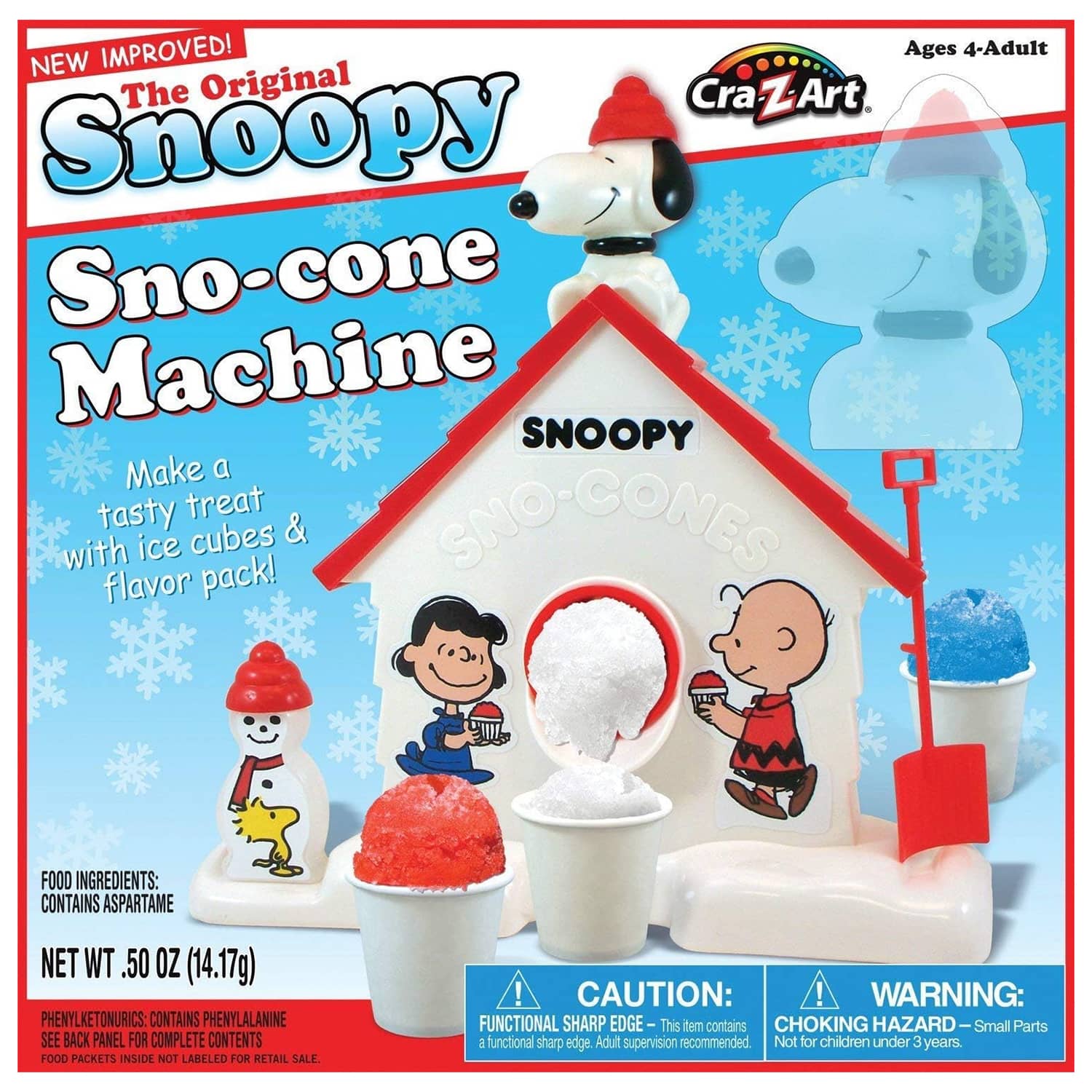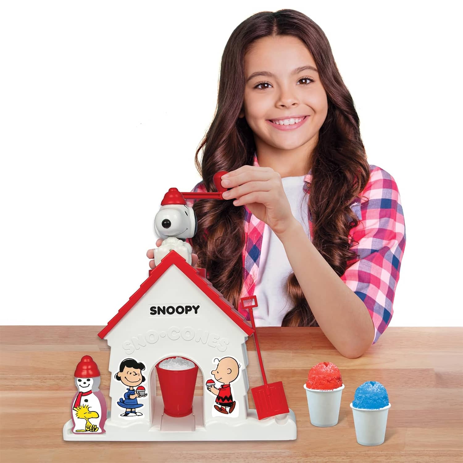 Does anyone remember the cool Snoopy Sno-Cone Machine from way back when they were little kids? I do, it was awesome! I think. It was shaped just like Snoopy's doghouse and you simply dropped ice cubes in on the top and then turned the crank as you pushed the Snoopy ice pusher down to grind them into shaved ice, er, snow. Then you would take the little snow shovels, fill up your cup with the created snow, and then top it with fruit punch syrup from the little squeezable snowman bottle or any other type of juice you wanted to use. Well, it's back and ready for the next generation of youngsters to enjoy or maybe just for you to use secretly at the office. The only difference from the original is that the ice pusher and crank have been combined, so you just turn the crank on top of Snoopy's head now instead. Hmm, do modern kids even know who Snoopy is? Check out the video below to watch the original television commercial to conjure up some warm fuzzy memories.π₯π§π