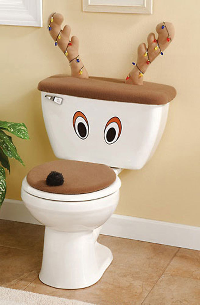 This holiday season, transform your ordinary porcelain commode into one of Santa's reindeers with this cool new Reindeer Toilet Seat Cover And Antlers Set. Normally, I'm not too fond of the fuzzy, um, furry, toilet seat cover look, but this festive one made me laugh. This decorative North Pole wildlife toilet disguise includes a seat cover with a pom pom nose, a tank topper with 3D antlers decorated with plastic bulbs and removable clings for eyes. This poor reindeer must have been extra naughty to get stuck with this job.