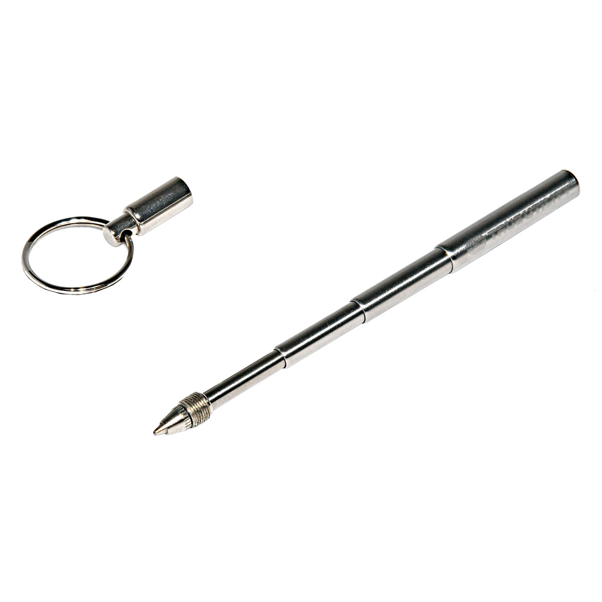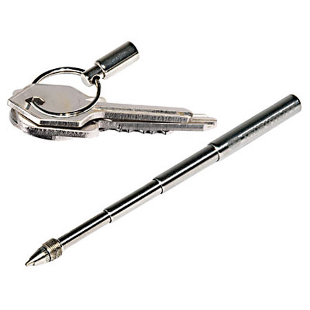 If you always need a pen when you're out and about, attach this cool new TelePen - Telescoping Keychain Pen to your keys and you'll never be without a pen again. This ultra-compact collapsible pen telescopes out and when fully expanded, is nearly the length of a full-size pen. It features a tough stainless steel exterior that protects it from the elements and includes a keyring and 3 black ink refills. Handy solution and makes a great stocking stuffer gift.