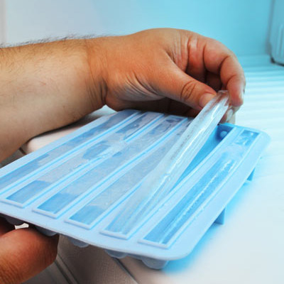 On hot summer days there's nothing more refreshing than an ice cold beverage, especially when sipped through one of these cool new Ice Straws. This unique food-grade silicone ice tray lets you make six 8" straws in the freezer from water, juice or sodas. Just pop the inner straws into the mold, fill it up, freeze and sip away. As the ice melts, the inner straws become exposed and become regular straws, but are infinitely reusable over and over again. Cooler drinks, less plastic in the landfills and much more fun than regular ice cubes.