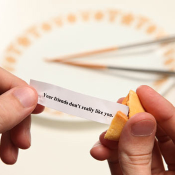 The problem with fortune cookies is that they all predict good fortunes, but that's all about to change when you sneak in a few of these sinisterly cool new Cookie Misfortune - Evil Fortune Cookies. After a bad day at work and an uncomfortably filling Chinese food dinner, make your victim's day even worse when they crack open and read the fortune in one of these prank cookies. The misfortunes range anywhere from shockingly cruel and evil to embarrassingly funny and hilarious. The cookies look and taste like ordinary fortune cookies, each with a different fortune inside, arrive packaged in a quart-sized take out box and come in blank wrappers to blend in easily. Should be good for a few laughs when you take your boss out for lunch.