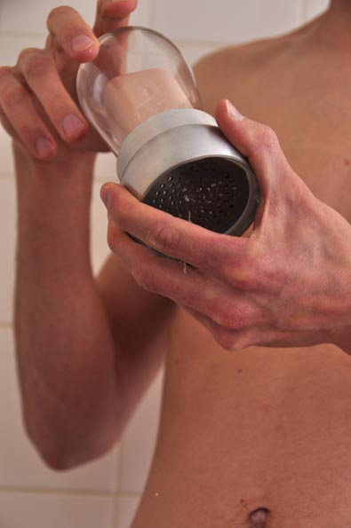 Designer Nathalie Staempfli has come up with a pair of cool new soap dispensers called Soap Flakes that use regular bars of soap instead of liquid soap. The first attaches to the wall in your bathroom and looks like a traditional liquid soap dispenser, but when you place your hand underneath and push in the lever, it grates a bar of soap into little flakes that easily dissolve into lather while scrubbing your hands with water. The other version is more reminiscent of a liquid body soap dispenser for the shower. Just turn the base like a pepper mill and it grates and dispenses soap flakes from the bottom. Unfortunately, these are just concept designs, but perhaps with enough interest, they can be put into production. Such a cool idea.