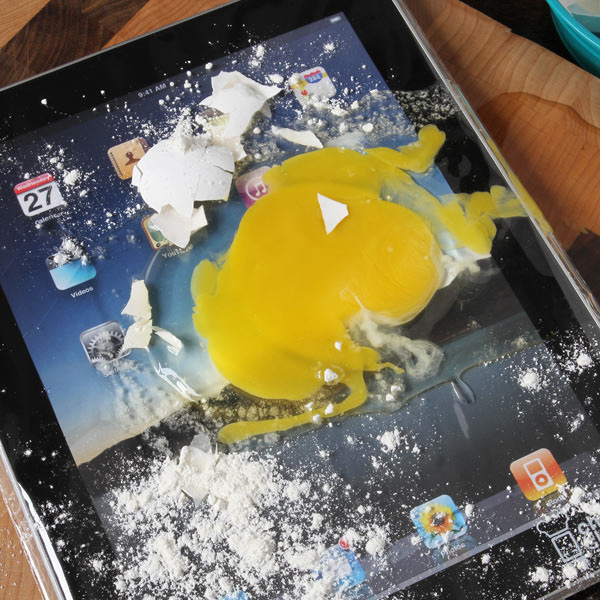 These ultra clear 100% touch-sensitive sealable plastic sleeves protect the iPad, iPad 2, and similar sized tablets from hazardous spills and sticky fingers, yet don't affect the touchscreen's sensitivity at all. The packaging also doubles as a simple tablet stand for easy recipe visibility too.