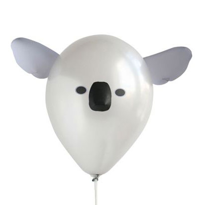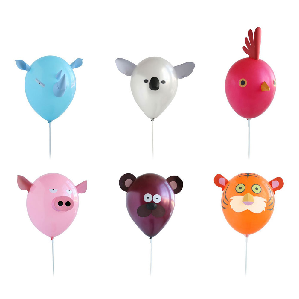 These cool new Air Heads - Animal Party Balloons by designer Hector Serrano are much more fun than plain old balloons and as far as balloon animals go, you can actually tell what these are supposed to be. Each set includes 6 different colored balloons, 6 wands, and all the stick on animal parts you'll need to make a pig, rhino, koala, bird, bear and tiger.