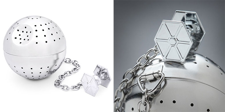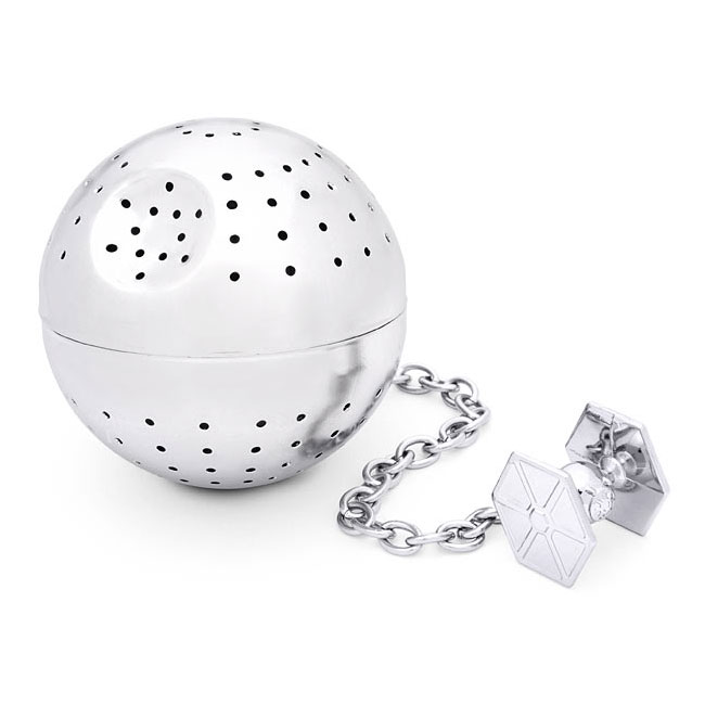 When you have the power to destroy a planet, it's probably a good idea to relax with a soothing cup of tea before making any rash decisions. The cool new Star Wars Death Star Tea Infuser is a standard tea infuser shaped like the ones typically found in official Empire gift shops all around the galaxy. Just fill up the this intergalactic superweapon / stainless steel tea ball with your favorite Endorian loose leaf tea or Earthbound varieties, steep in a mug full of boiling water and then enjoy while you contemplate crushing all rebellions and bringing the galaxy to its knees.