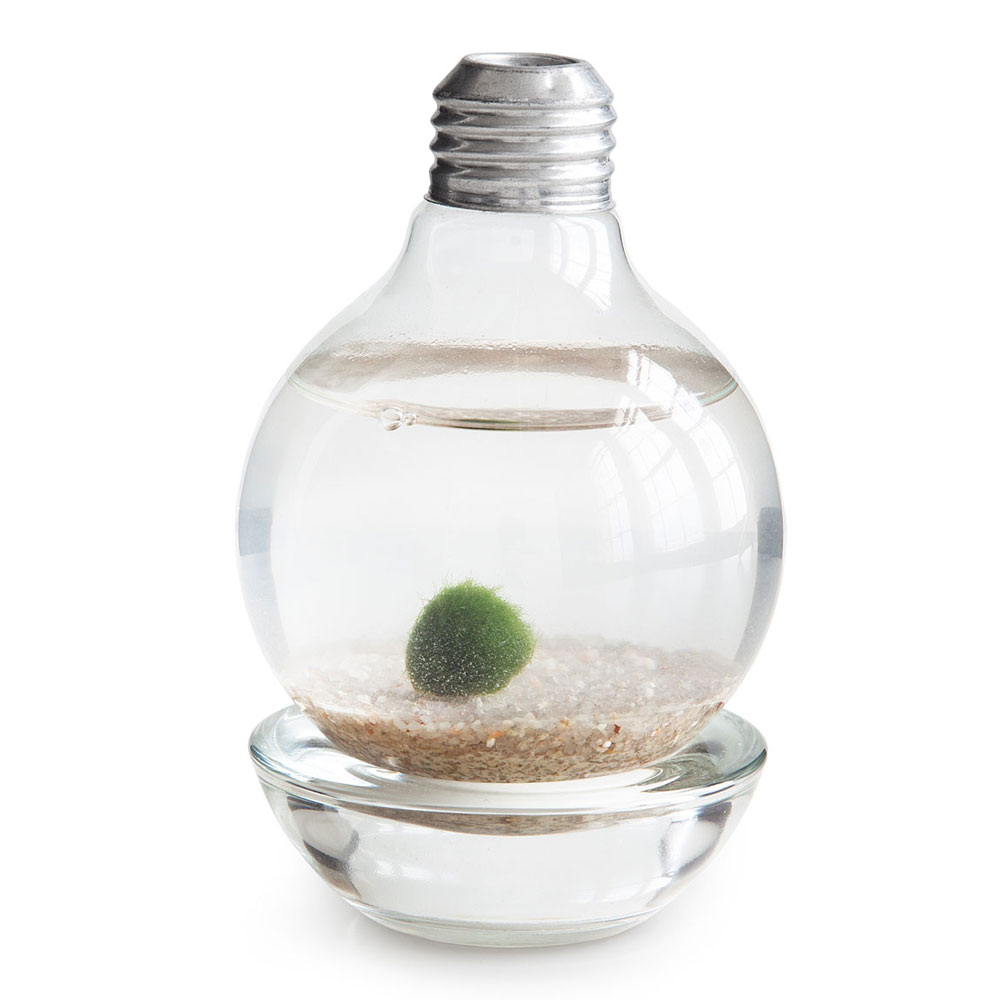 Ever heard of a Marimo moss ball? It's a rare green ball of living moss/algae found exclusively in lakes in Iceland, Scotland, Japan, and Estonia where the swirling currents cause it to grow in this unique shape. Well, now you can raise your very own underwater living ball that the Japanese consider to be lucky inside this cool new Marimo Moss Ball Light Bulb Terrarium. I'm not sure why it's living in a repurposed light bulb, but this unique terrarium only requires fresh water every couple of weeks and a sunny spot to flourish. Don't worry it doesn't bite, well, at least that's not it's typical behavior.