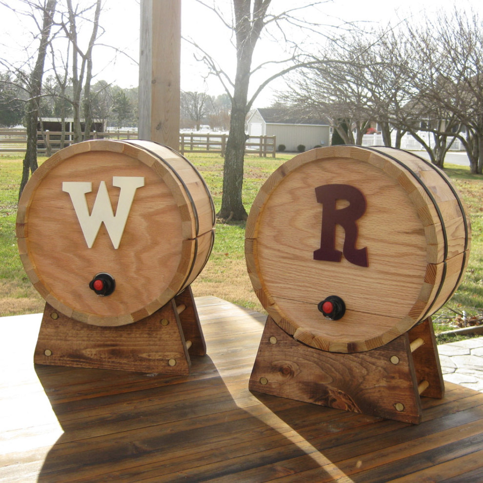 If you're not too thrilled with putting out the infamous box of wine at your next gathering, then disguise it in this cool new Box of Wine Cedar Barrel Dispenser. These rustic cedar barrels may look real, but they actually split in two, allowing you to hide a 3 liter wine box or 5 liter wine box bladder inside with their spigots sticking out like the 3L Black Box, 3L Bota Box, and 3L Green Box or 5L wine box bladders like Franzia and Vella. They even include a matching stand that's tall enough for wine glasses to easily fit underneath the tap. The perfect solution for parties (get multiple barrels for multiple wines), wedding receptions, restaurants, bars, bedroom, office, or wherever.