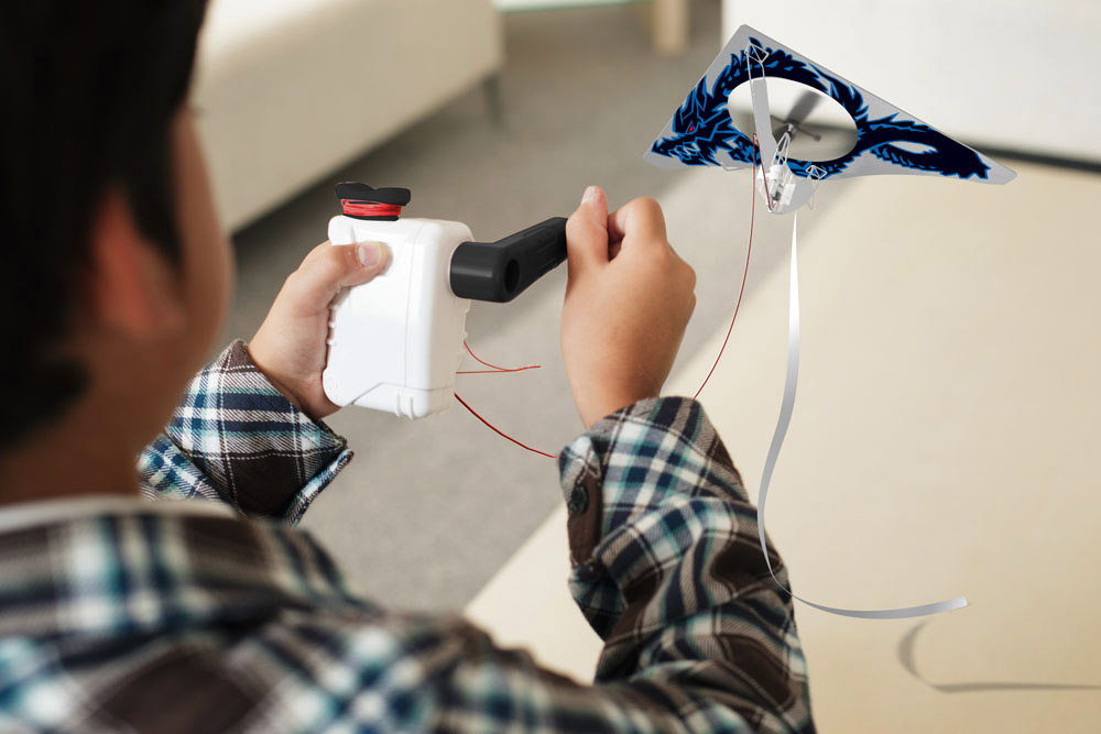 On a beautiful and breezy Spring or Summer day, go outside and fly a real kite, but on a rainy day or when trapped inside in a horribly boring office, simply launch this cool new HomeKite Indoor Kite. This high tech, powered kite from Japan is designed to be flown indoors with a power cord and hand-crank power generator doubling as the traditional string and winder. Just crank away and kinetic energy is sent to the kite's propellers sending it up into the air. Available in 6 colorful designs. Check out the video below to see it in action.