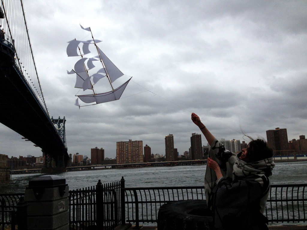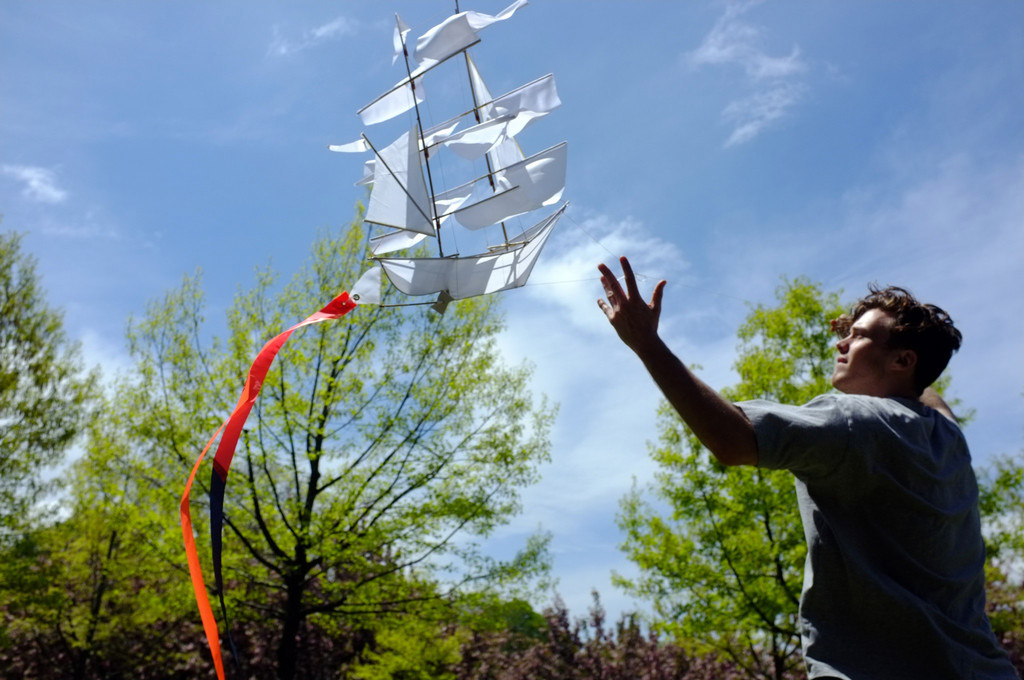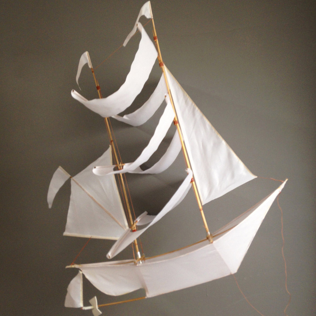 Go from sea to sky when you put wind in the sails of this cool new Sailing Ship Kite. This unique kite is a little sailing ship that actually soars through the air. It's a Certified Fair Trade kite made in collaboration with Balinese artisans from locally-sourced bamboo and nylon and features a Baltic birch kite handle, wrapped with braided Dacron flying line. The good news is that when this ship goes down, you won't need to go down with it, but beware of pirate kites sailing through the skies nearby.