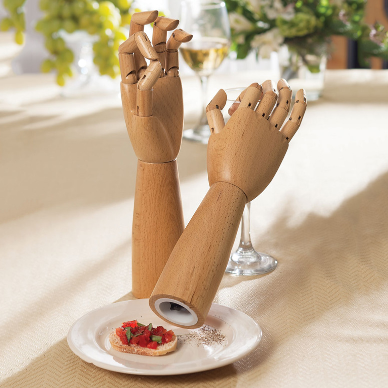 Want to spice up your food and learn to draw at the same time? Then check out these cool new Handy Salt And Pepper Mills. These handmade beech wood salt and pepper mills are inspired by artist manikins with fully articulated and jointed fingers on top and a ceramic grinding mechanism on the bottom. A great way to make dining and asking for someone to hand down the salt a bit more awkward yet interesting. Available in left or right hands.