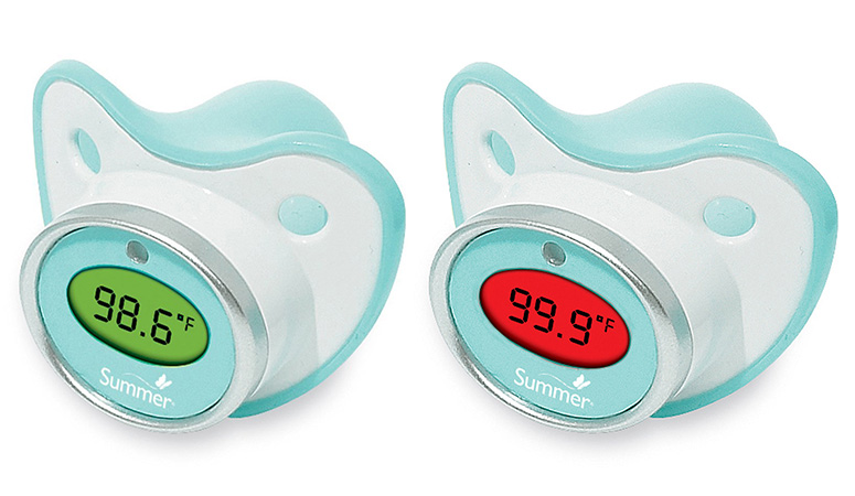 Is your baby screaming and crying from a fever or just screaming and crying to scream and cry? This cool new Pacifier Thermometer is the quieter and more comfortable way to take your baby's temperature. Just stick it in their mouth like any other pacifier and it quickly takes their temperature and displays the reading on the front, along with a red glow alert if a fever is detected. It features a comfortable orthodontic nipple, beeps when readings are complete, automatically turns off to preserves battery life, and has a memory to recall the last reading.