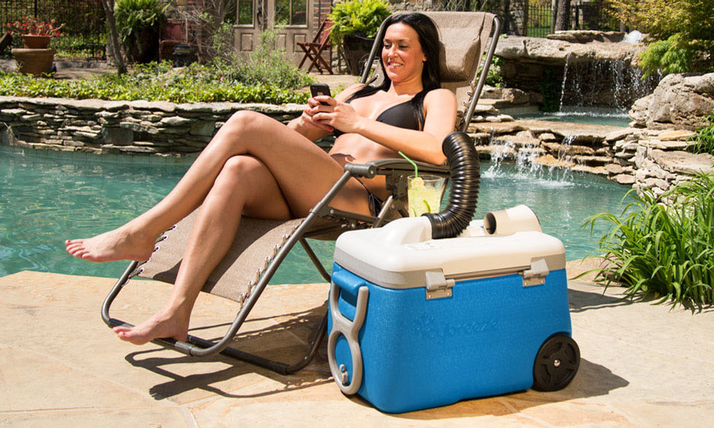 The cool new IcyBreeze is the world's first portable air conditioner / cooler that not only keeps your drinks ice cold, it keeps you cool as well. Just add some water, fill with ice and beverages, and you're ready to face the sweltering Summer heat down at the beach, while camping, attending sporting events, or just mingling at backyard BBQs.