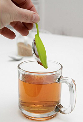 Making your tea can now be just as relaxing as sipping it when you brew a cup using this cool new Kikkerland Floating Leaf Tea Infuser. This whimsical leaf-shaped loose leaf tea infuser gently floats on the surface of a cup of hot water as it steeps. Just add your favorite loose leaf tea to the stainless steel infuser chamber, snap on the flexible leaf lid, and set into the water to float about. When ready, just grab the leaf by the handy carrying stem and enjoy.