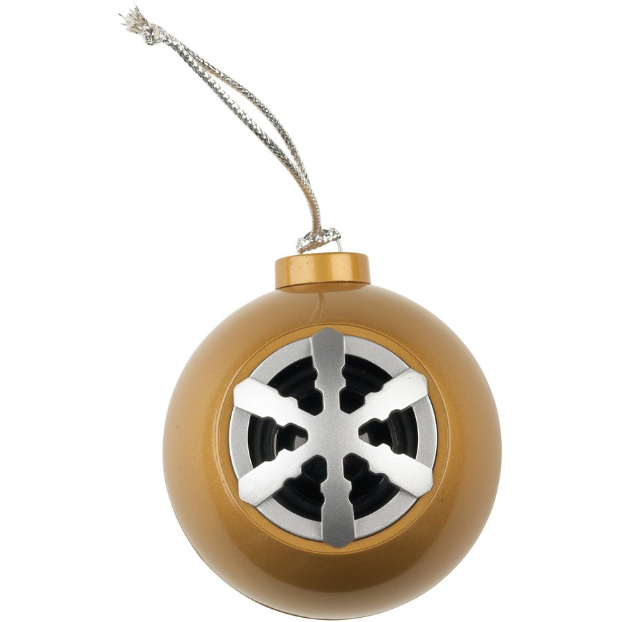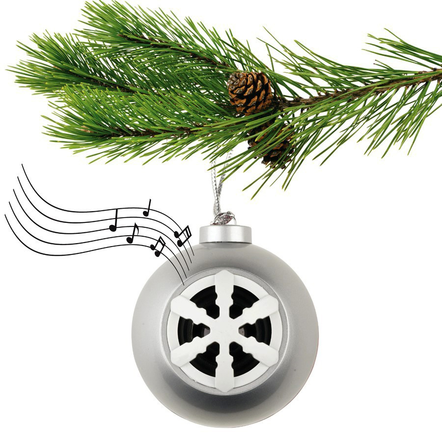 The cool new Acoustic Research Ornament Bluetooth Speaker lets you rock out around the Christmas tree to your favorite holiday music. Just hang this attractive and seemingly normal ball ornament on a branch of the tree amongst the others, wirelessly sync it with your smartphone or other Bluetooth device, and push play. The music plays through a 3-watt speaker inside the ornament and it can play for hours before needing a recharge. Perfect for playing music while trimming the tree, hosting the Christmas party, pranking people, or driving a curious cat utterly insane.