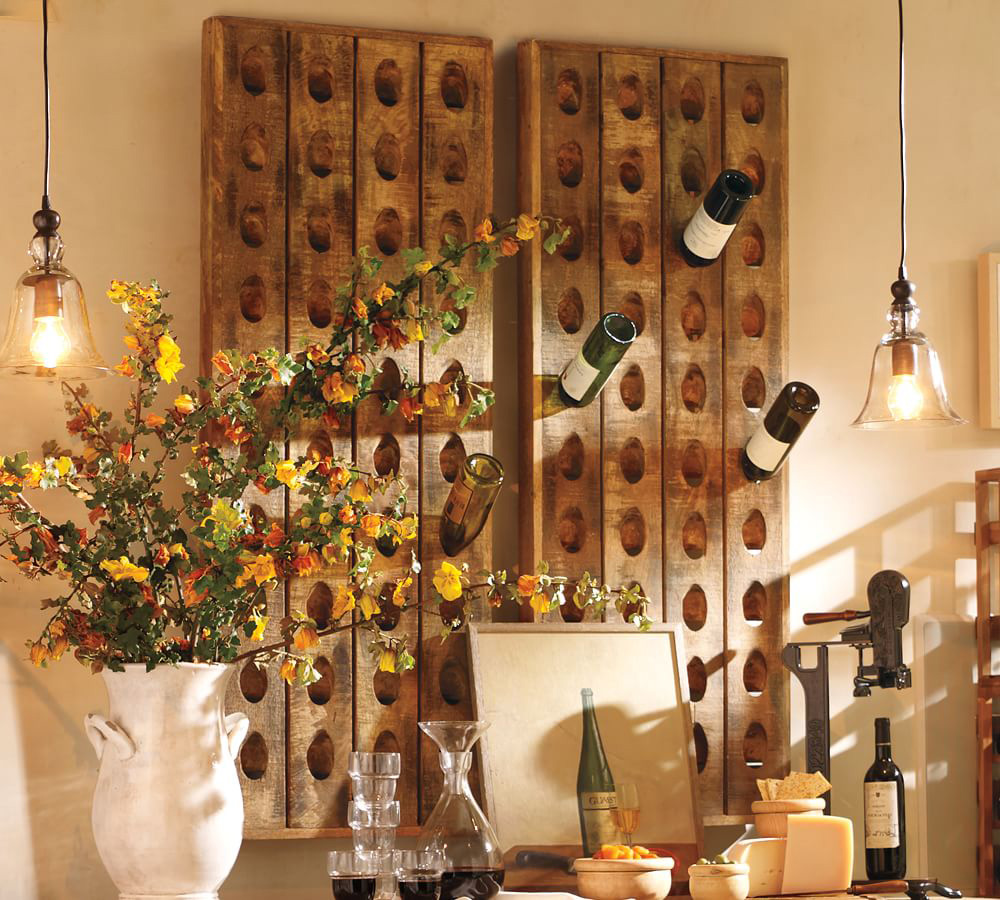 In the old days, part of the production of making French champagne and sparkling wines involved giving each bottle a slight shake and a turn in special wooden riddling racks that held the bottles at an angle. Today, this process is automated by heartless machines, but you can still gaze upon these unique racks as a decorative wine storage spot on your wall with these cool new French Wine Bottle Riddling Racks. These rustic riddling racks are crafted from mango wood with a knotty finish and can hold up to 60 lbs of filled bottles, empty bottles as artful wall decor, or just use them as vertical succulent gardens.