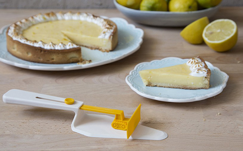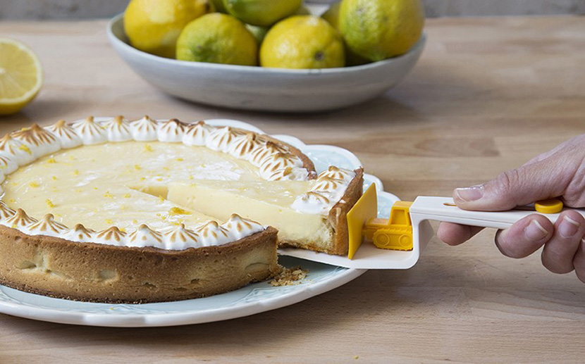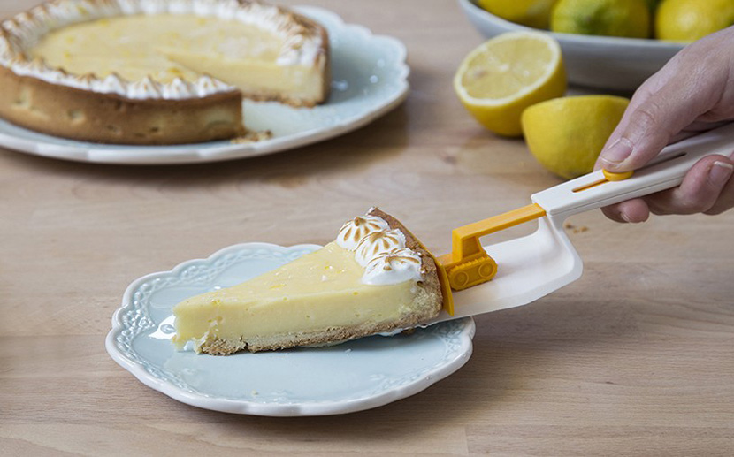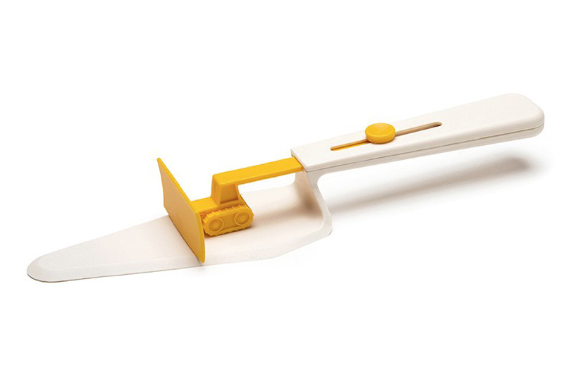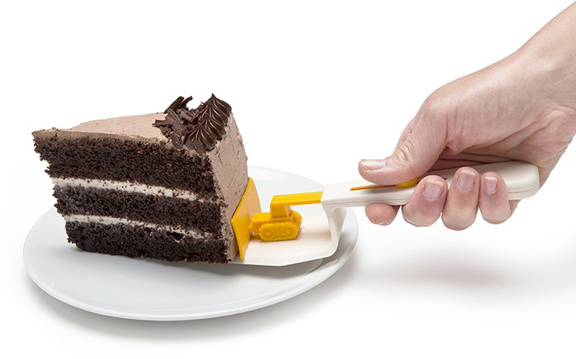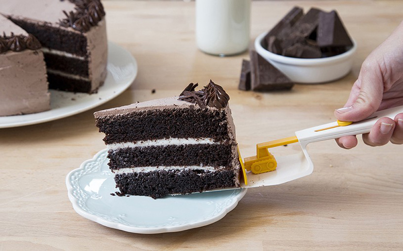 Birthday parties or anytime cake and pie will be served tend to be fun times, but not as much if you get stuck slicing and serving up slices of said cake and pie to guests. The solution is this cool new Cakedozer. This ingenious cake server has a miniature bulldozer that pushes a slice onto a plate with just a slide of the thumb. Perfect for birthday parties full of heavy duty construction equipment-loving kids or anyone who loves to shovel endless slices of cake into their mouth. Now they need to invent a backhoe ice cream scoop.