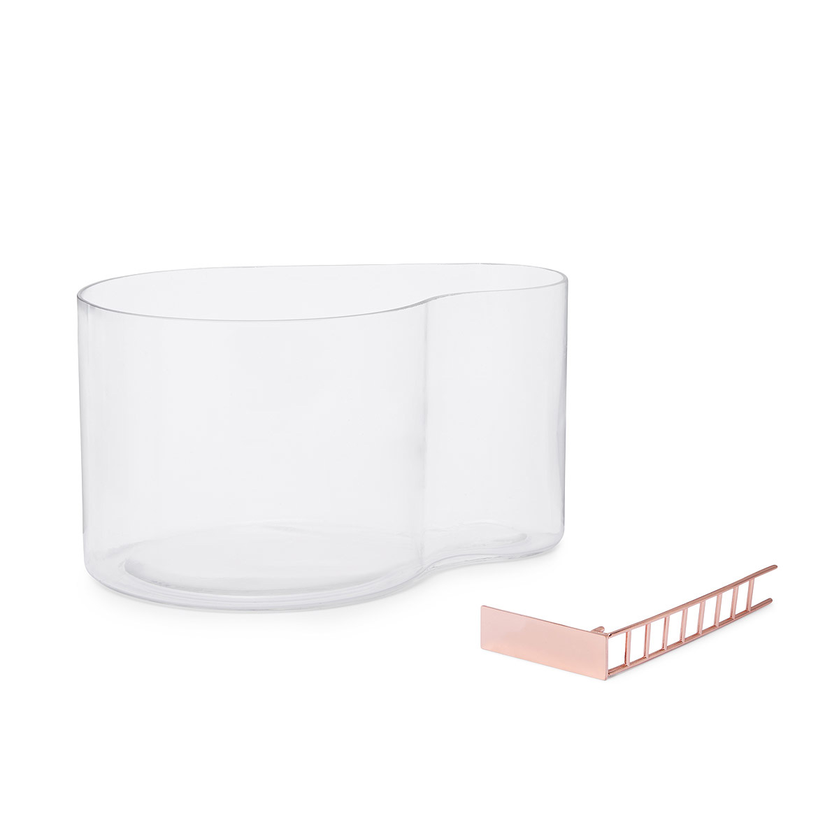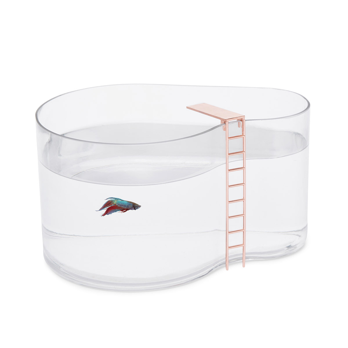 Normally, I would recommend a large aquarium if you plan to raise some fish, but if you have a solitary Betta fish who doesn't get along too well with others, then upgrade its boring old tiny bowl to a resort-like experience with this cool new Fishpool Aquarium. This fun betta fish bowl is shaped like a miniature glass swimming pool complete with a copper diving board, should it so choose to decide to practice some high dives or majestic belly flops.