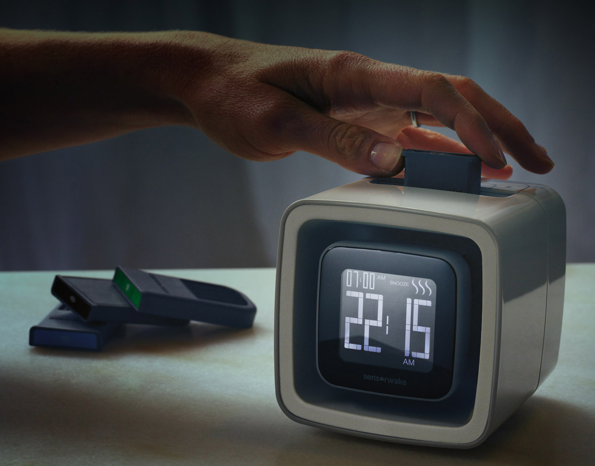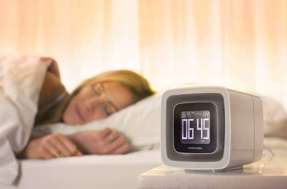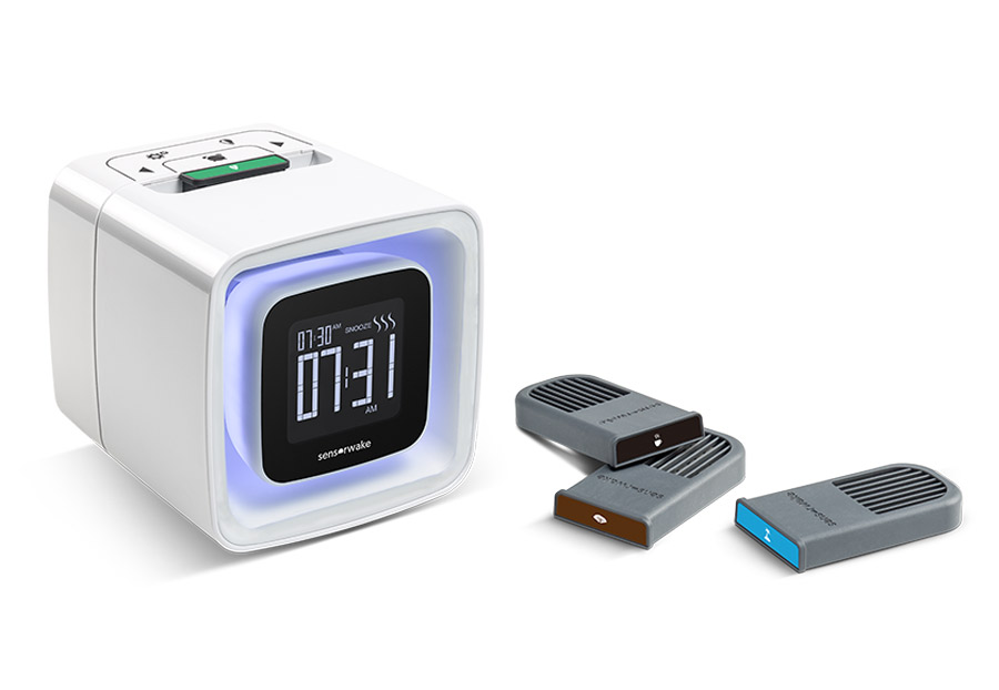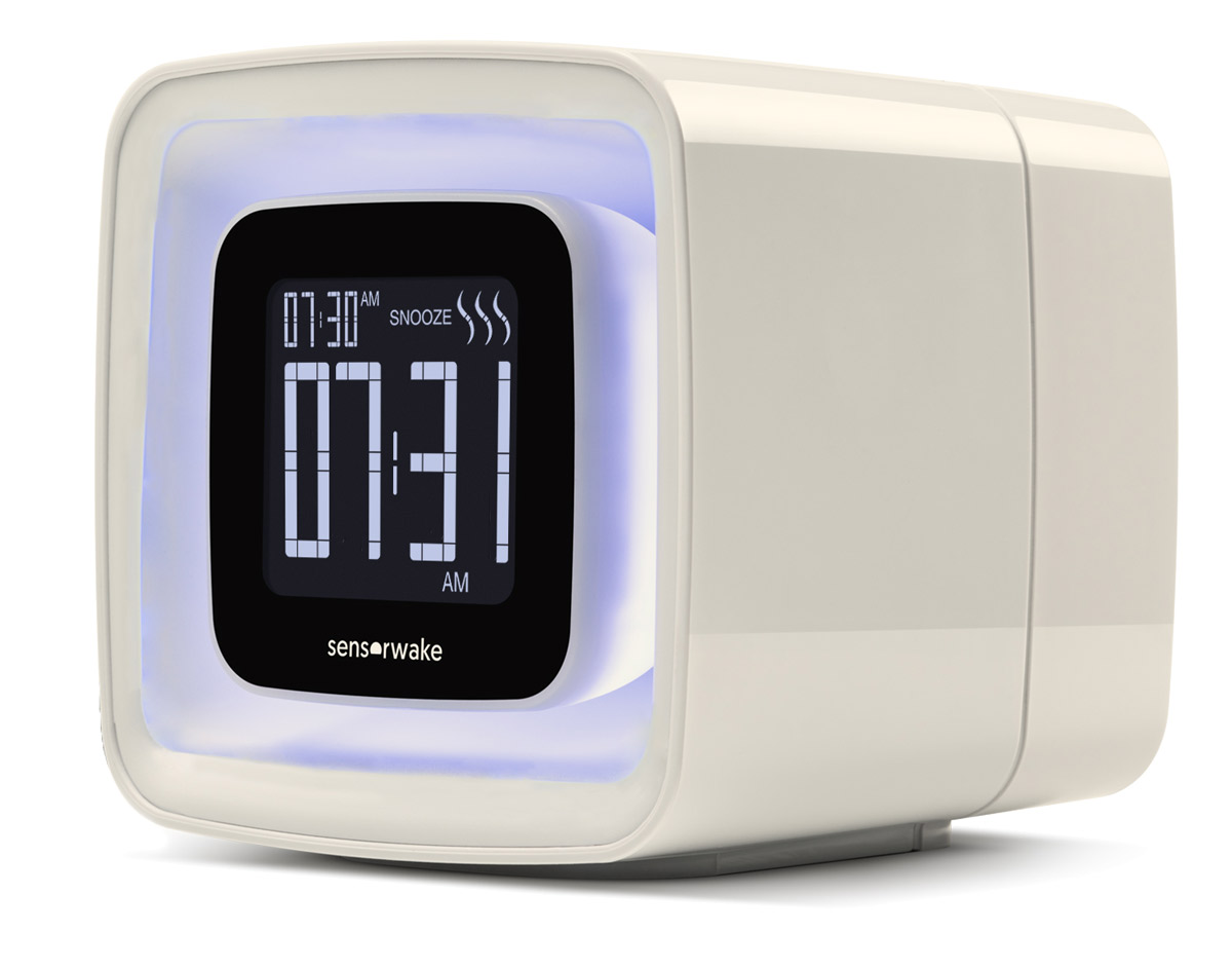 If you find waking up to the scent of fresh brewed coffee to be a great way to the start the day, but you can't quite smell the kitchen downstairs, then check out this cool new SensorWake - Olfactory Alarm Clock . This futuristic alarm clock not only wakes you up with the sound of five different soft melodies in your ears, it also engages your other senses by gently illuminating the room with a soft dynamic light and then diffusing a stimulating scent into the air. It includes coffee, peppermint, orange juice, fresh cut grass, seaside, pine woods, and apple-cinnamon scent cartridges to awaken to and each cartridge provides 30 three-minute wake sessions. If tantalizing your three senses doesn't drag you from a deep slumber, it also includes a traditional snooze button as well.