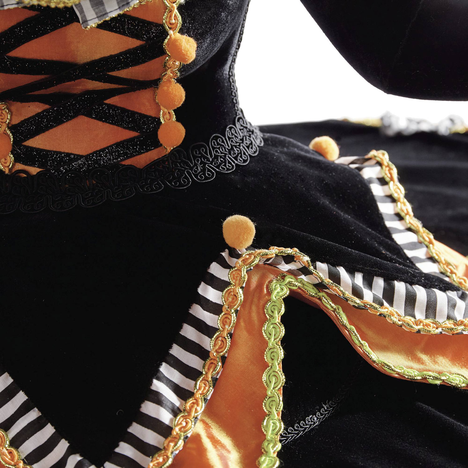 At your next Halloween party, gather your friends, fiends, and enemies around this cool new Witch Tabletop Server from Katherine's Collection and imbibe and feast from the intoxicating potions and edible concoctions served upon the trays in her hands and around the brim of her spooky witch hat. This magnificent tabletop server depicts Mable the witch looming large upon a table holding up serving trays and features a highly detailed, hand-painted resin face and hands, a posable hat, and is outfitted with a black velvet table topper gown with black, white, orange and purple trim, and a ruffled collar around her neck. Fear not, because this witch is sure to cast a powerful charm spell upon all of your guests this Halloween.