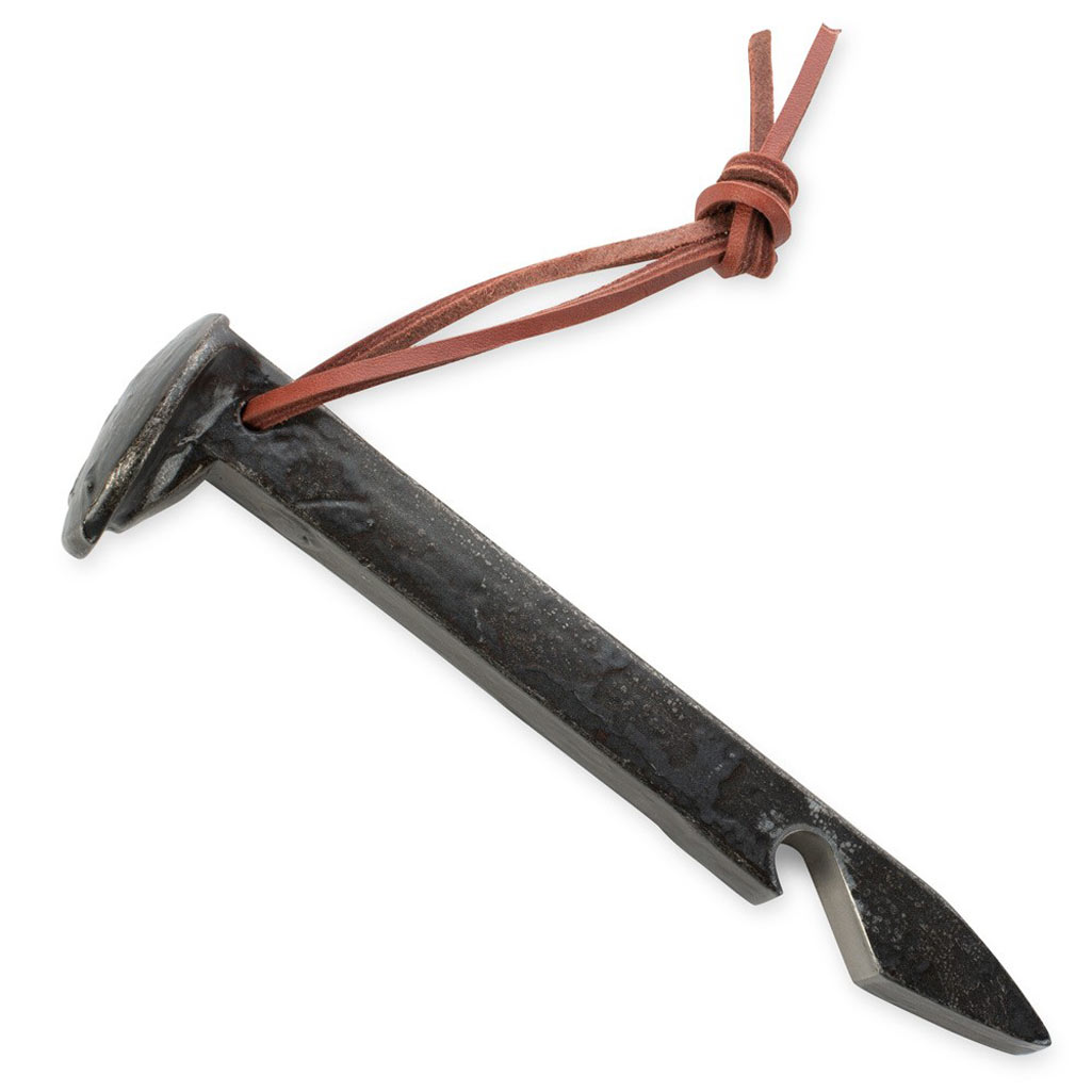 When you need the absolute most hardcore and heavy duty tool to remove a pesky bottle cap from a bottle of beer, look not further than tearing it off with this cool new Railroad Spike Bottle Opener. This authentic forged steel railroad spike has been hand cut, polished, and repurposed into a simple bottle opener that will last a lifetime or two and includes a leather strap for hanging up or wearing around your wrist to prevent friends from walking off with it. Each bottle opener / railroad spike is totally unique, has its carbon content and batch number stamped on the head, and antique coated to preserve its natural patina and to keep your hands clean. Makes a perfect gift for train-loving beer drinkers, a best man and groomsmen, Father's Day, or just for yourself, because you want a serious beer opening tool for your man cave or home bar.