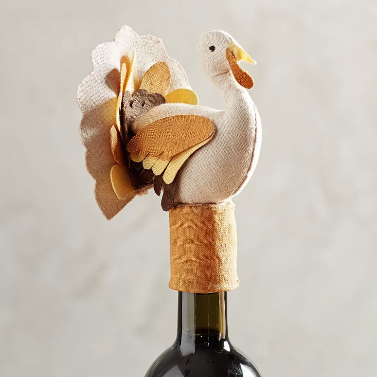 This Thanksgiving, serve up wine to your guests that is fully decked out for the holiday feast with this cool new Turkey Wine Topper. This whimsical little turkey sits on top of a wine bottle and is crafted from colorful polyester and cardboard. It also makes a nice decorative accent on a wine bottle you intend to bring as a gift to a Thanksgiving dinner.