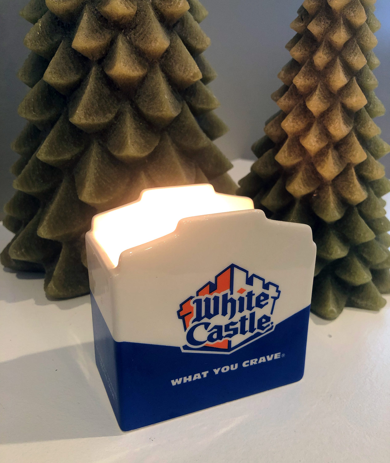 After a night on the town, nothing tastes or smells more delicious than a huge sack of White Castle sliders. Well, that tempting scent of little square beef patties steaming on a bed of onions has been captured in this cool new White Castle Burger Scented Candle. This little scented candle is set inside a ceramic candle holder that resembles the actual cardboard box, but as strong as your slider craving gets, please don't eat it. It's the perfect scented candle for the bathroom, makes a perfect gift for any White Castle lover, and White Castle will also be donating 100% of net proceeds from candle sales to Autism Speaks.