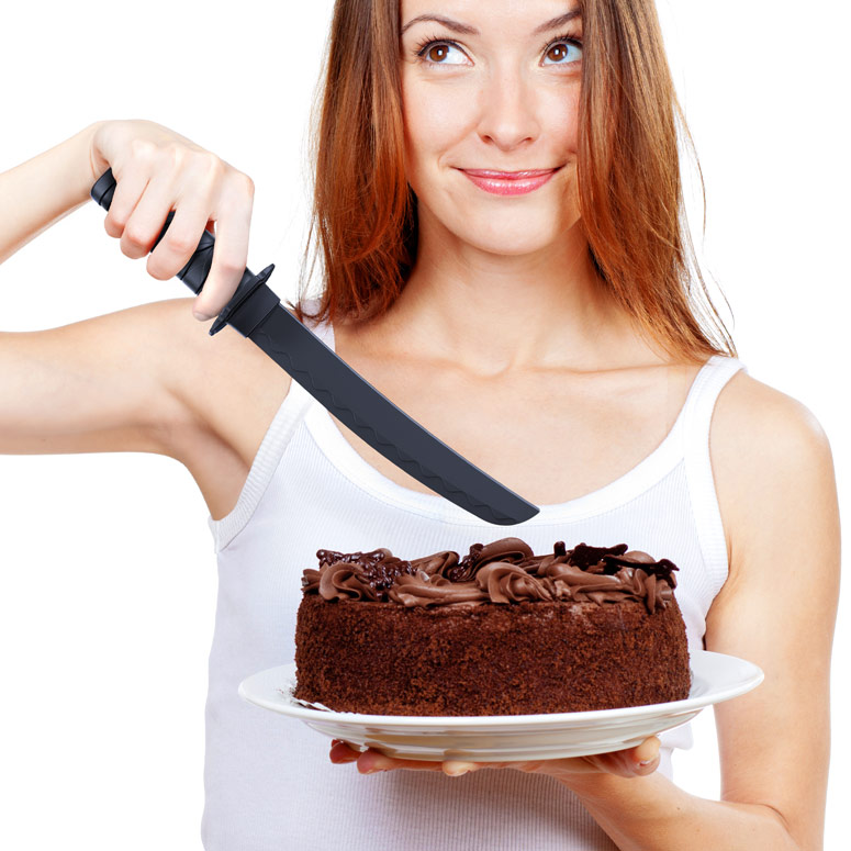 This cool new Cake Samurai is a miniature samurai sword that lets one channel their inner warrior and swiftly slice up cakes at the same time. This fun cake knife sword is forged from food-safe plastic, yet is sharp enough to carve up slices of your favorite baked goods with ease. Perfect for birthday cakes, wedding cakes, or just anytime cake will be served after a victorious battle, especially against ninjas.