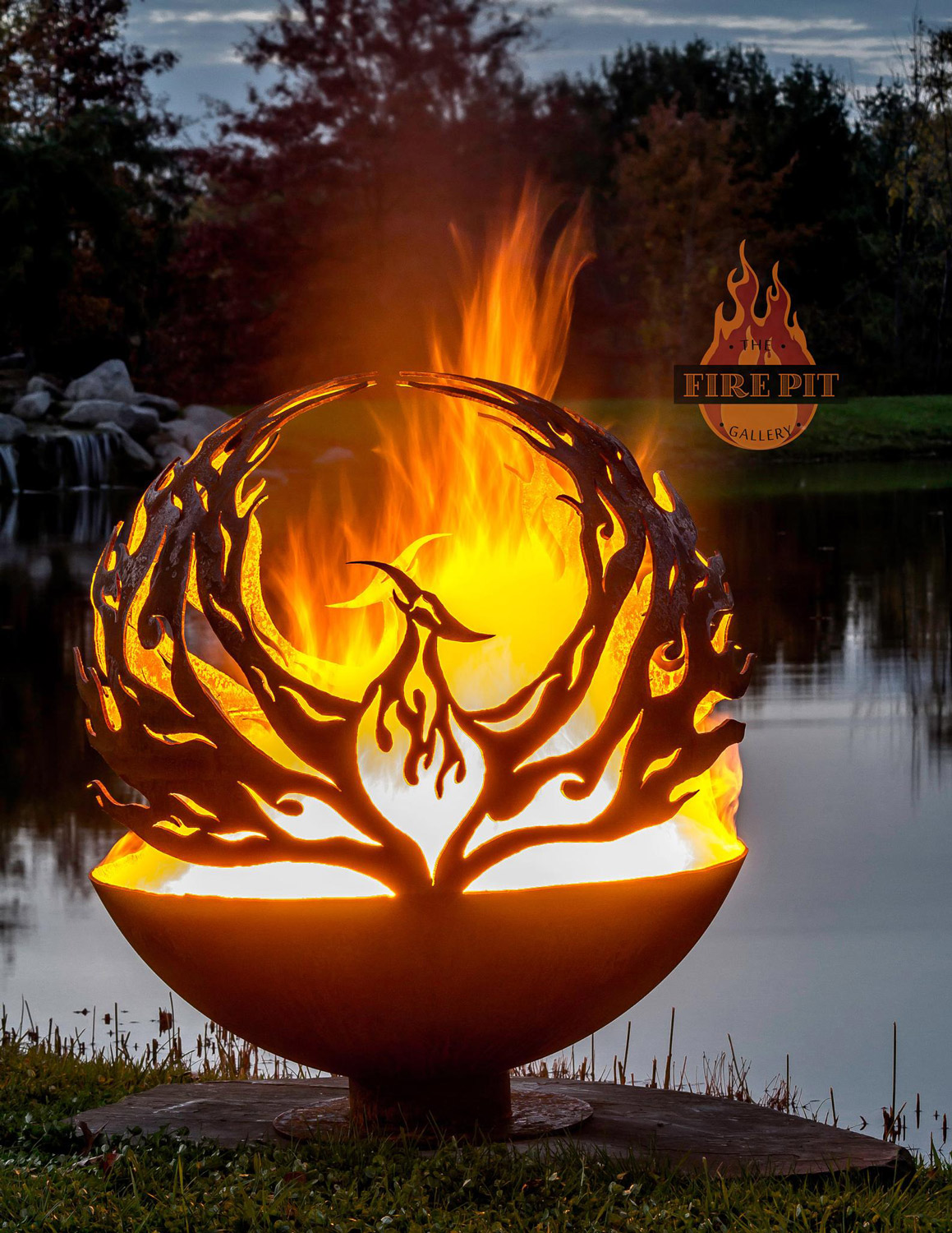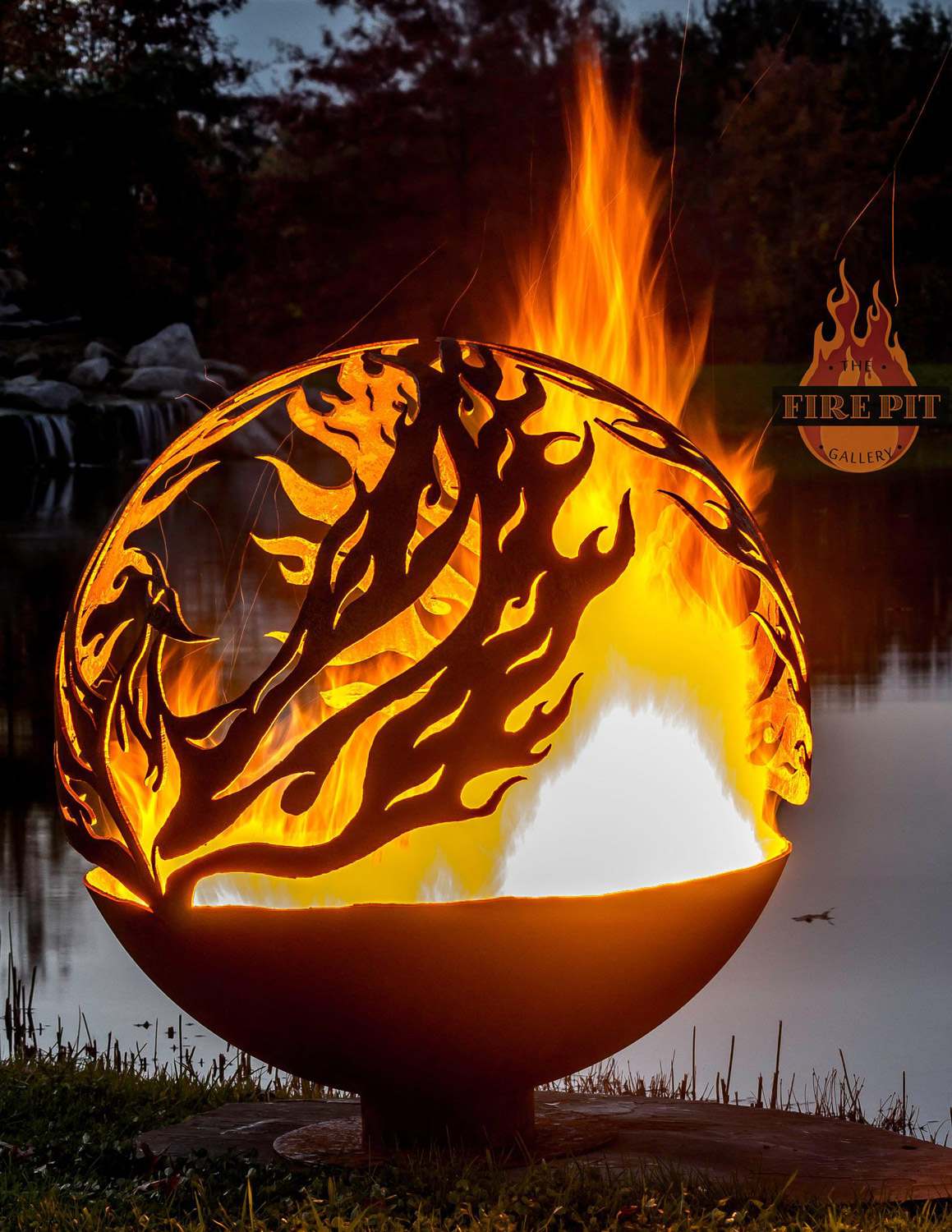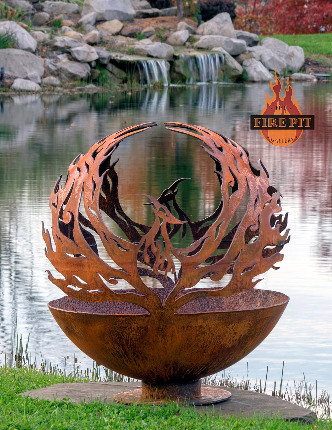 Where there's a blazing fire, there just might be a magical phoenix rising up from its ashes and that's exactly what is depicted with this cool new Phoenix Rising Fire Pit. This massive 41 inch diameter wood-burning fire pit sphere by artist Melissa Crisp is hand cut in the USA from American made steel with a rusty patina finish and showcases the silhouette of a majestic phoenix rising up against a backdrop of flames. Available in three sizes, but I suggest going big.