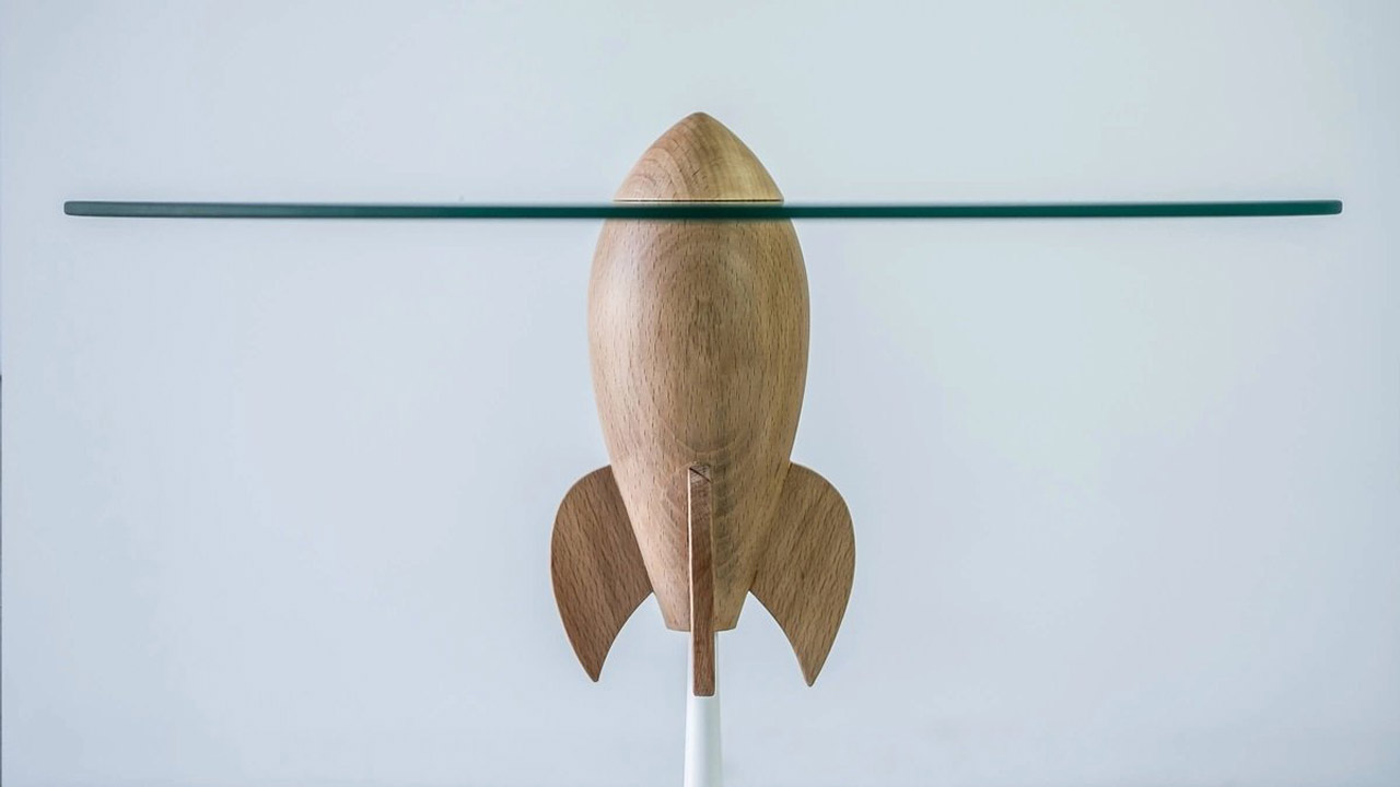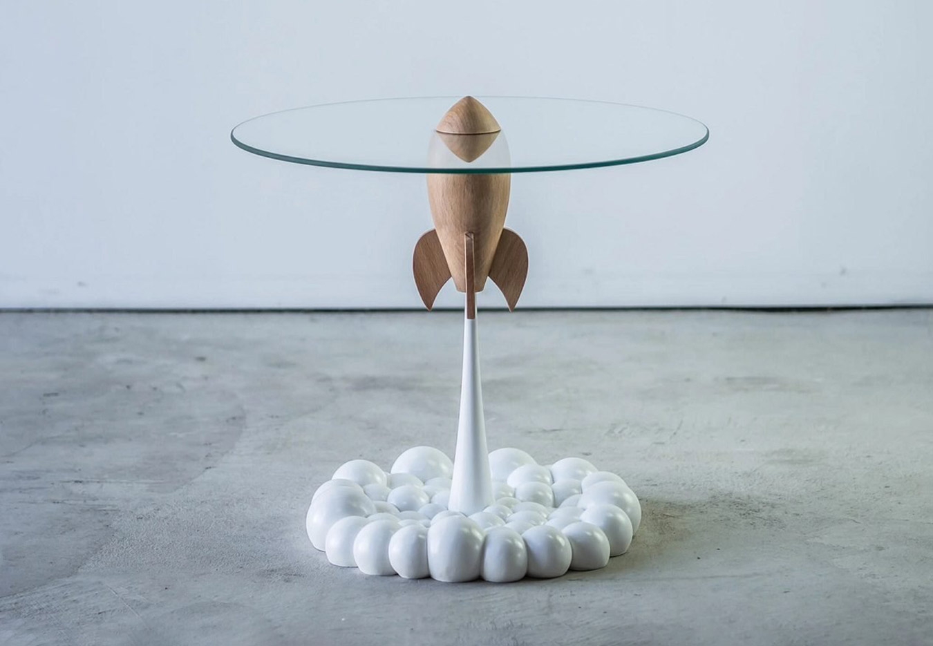 This cool new Rocket Table from the Mousarris Design Studio depicts a retro-futuristic sci-fi rocket ship blasting off into space with a glass tabletop riding on its nosecone and a puffy smoke trail exhaust doubling as its base. Each of these double-take-inducing sculptural space age tables is handcrafted and sure to get attention from anyone who still remembers dreaming of an exciting spacefaring future and all its adventurous possibilities, but who are still stuck on this planet in a dystopian nightmare present wishing they could return to the past for a do over. We might not be piloting massive starships in epic space battles with the pesky Neptunians... again, but we did finally get curbside grocery pickup and modern technology like turntables... *sigh*