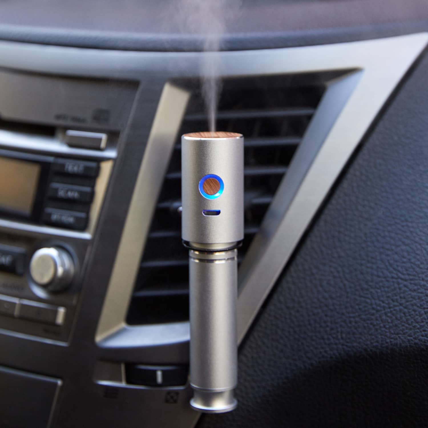 This cool new Aroma2Go Anywhere is a compact, portable, and sleek stainless steel essential oil diffuser that lets you freshen the air with your favorite scent anywhere from your car to your office to a hotel room on vacation. Just add the essential oil of your choice to the reusable wick, insert it into the diffuser, plug it in via USB, and then either place it on a surface using the pod base or in your vehicle via the included car vent clip. A much cleaner and safer alternative to burning scented candles and hanging up weird smelling air fresheners.