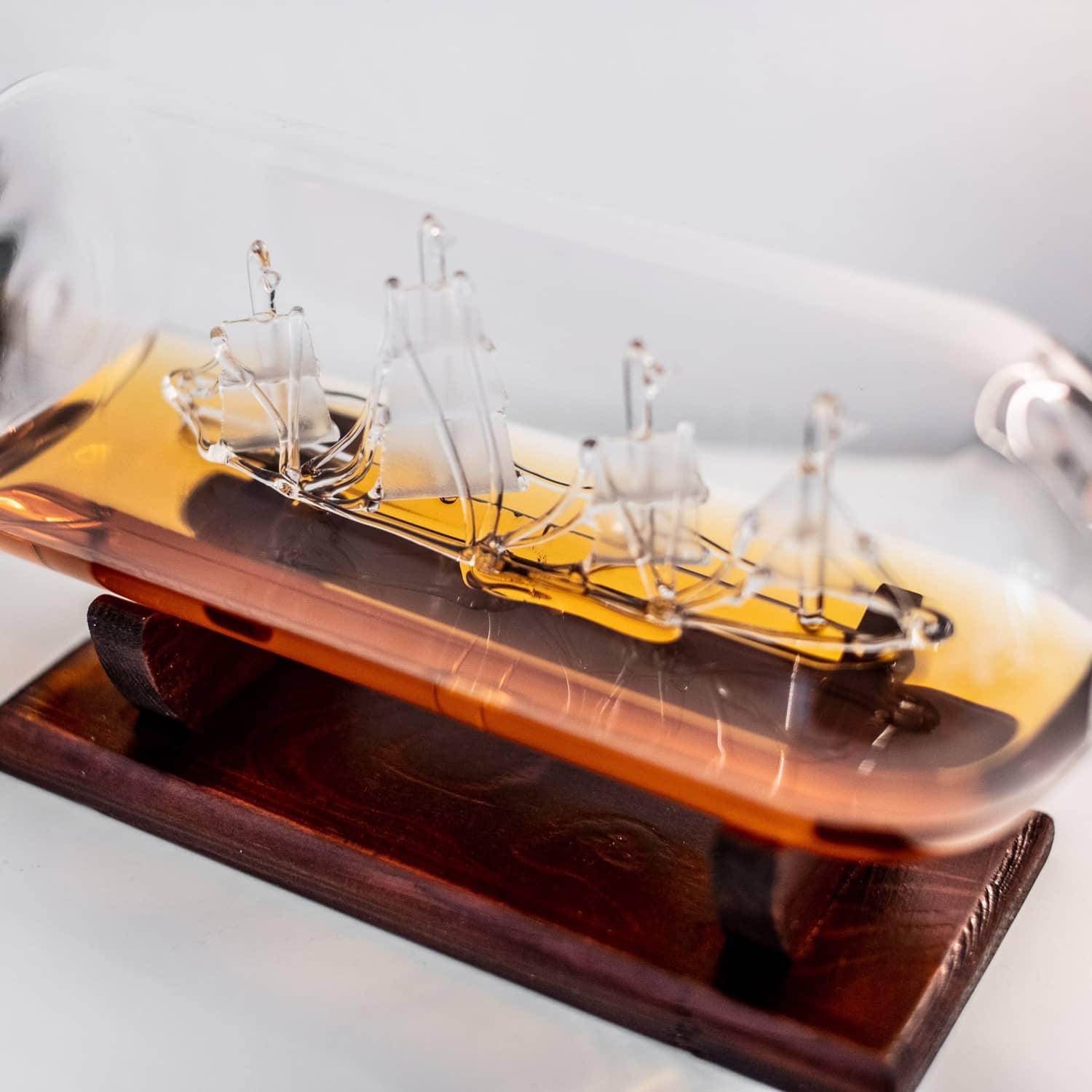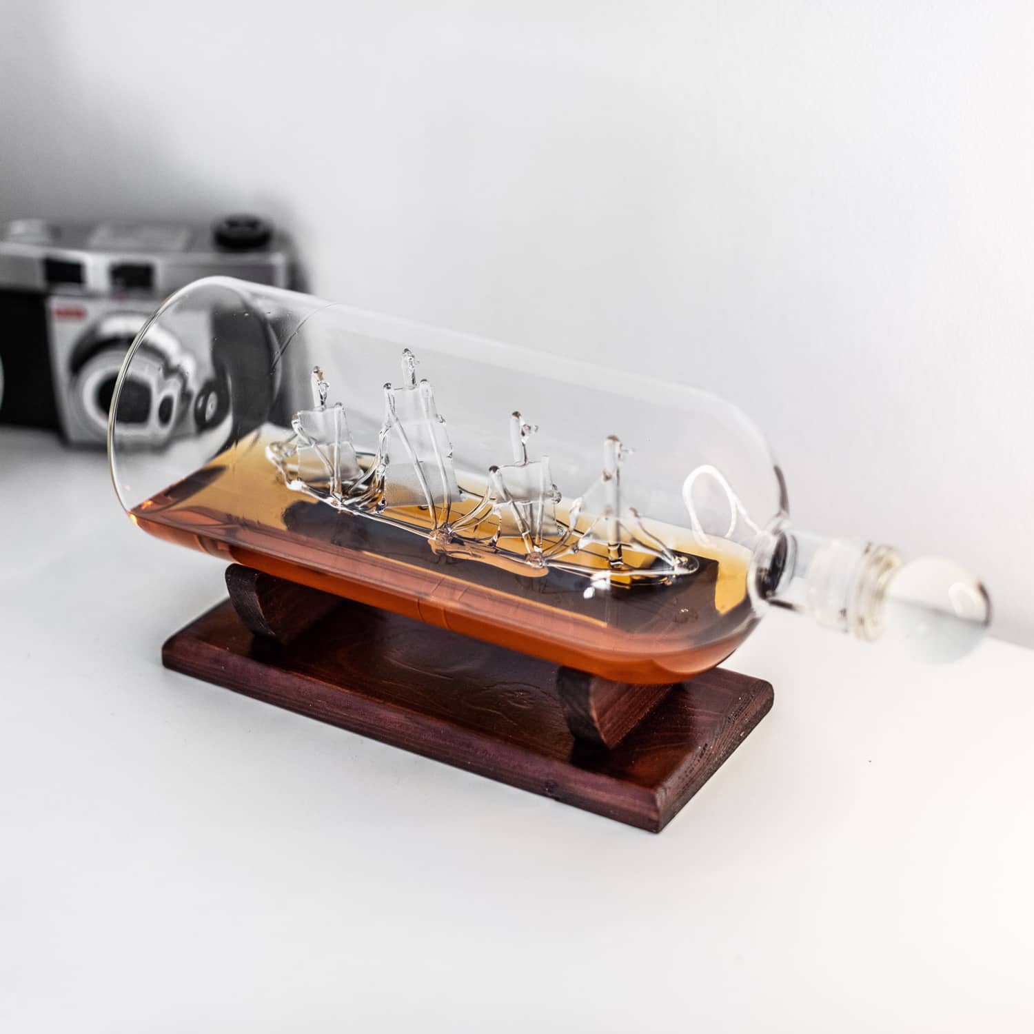 What's the point of spending all that time building a ship in a bottle and then not giving it something to sail upon? This cool new Ship-in-a-Bottle Decanter is a nautical-inspired decanter crafted from borosilicate glass that depicts a ship-in-a-bottle floating upon a sea of your favorite booze... like pirate rum! The bottle and ship are handcrafted from detailed borosilicate glass and includes a cork stopper. Best of all, no hobbyist skills or assembly required. It also works great for holding blue mouthwash too.