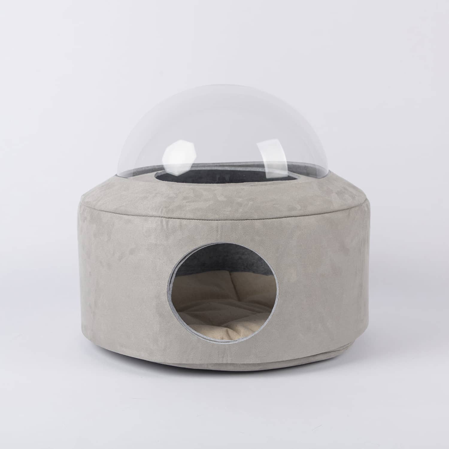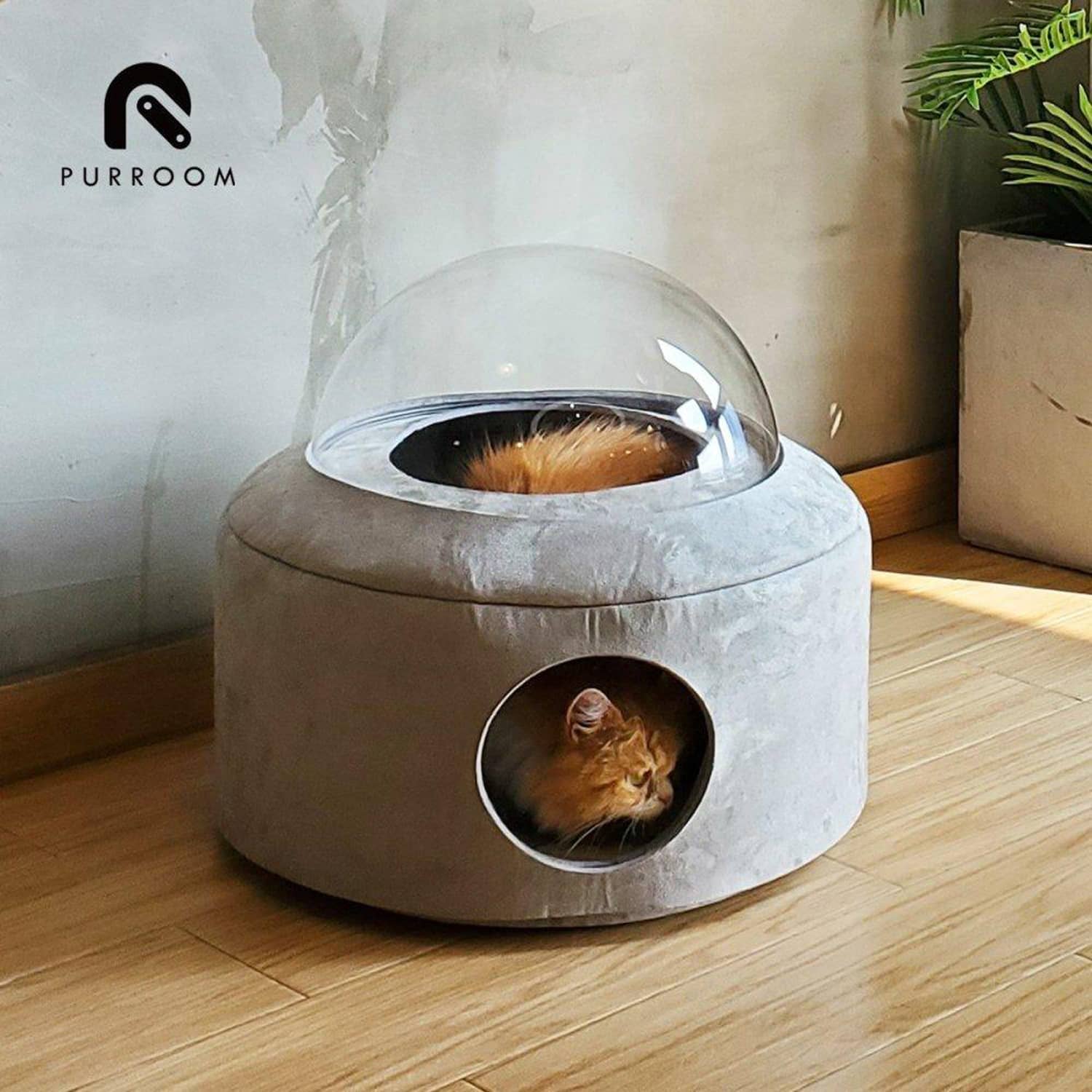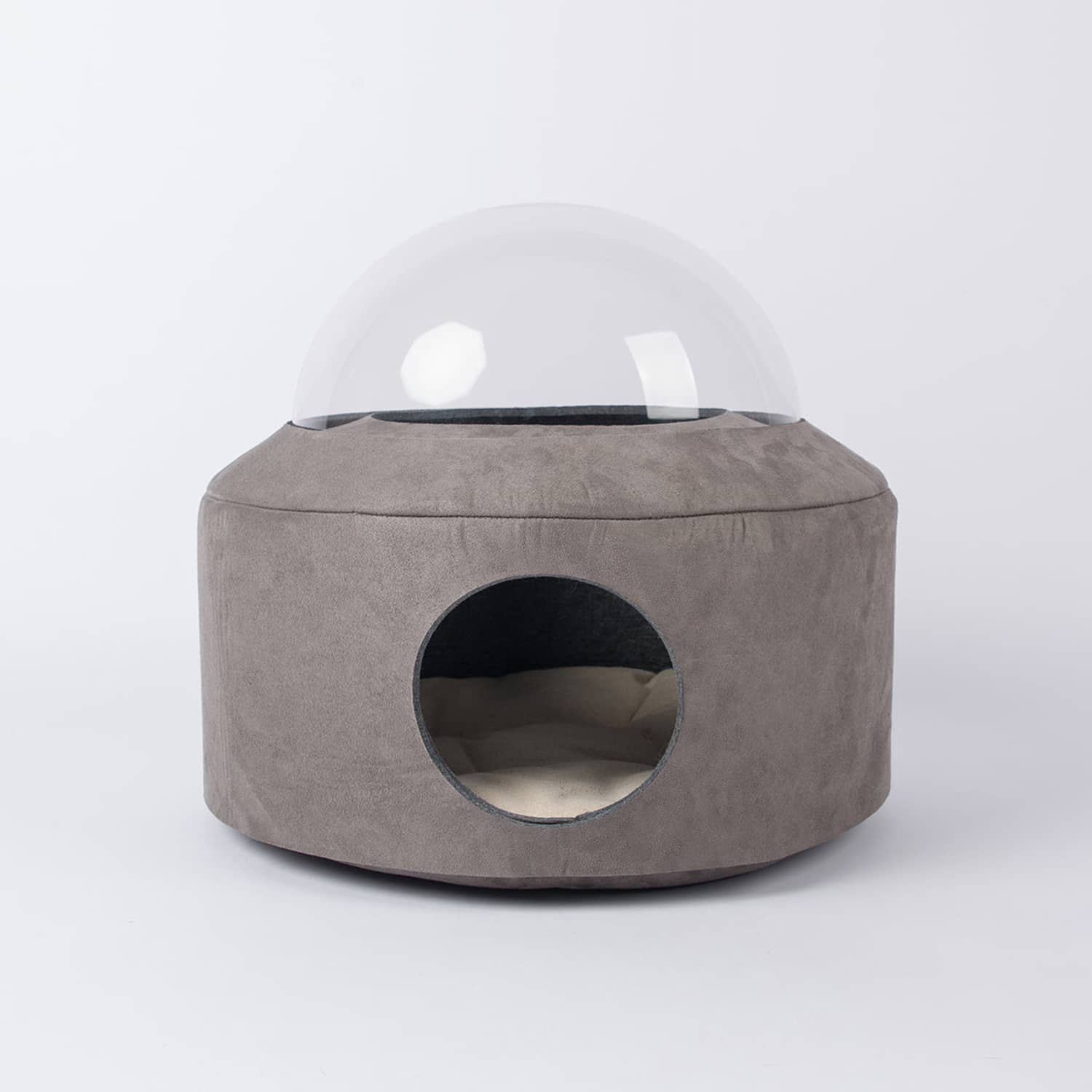 Does your pampered furry feline friend have their own spaceship yet? This cool new Space Capsule Cat Bed from Purroom is a miniature spacecraft / pet bed for cats from outer space (and Earth) that has a transparent acrylic dome on top for them to safely obverse the universe around them. It comes in two sizes and features a suede exterior in either dark grey, light grey, or orange and a cotton linen interior cushion.
