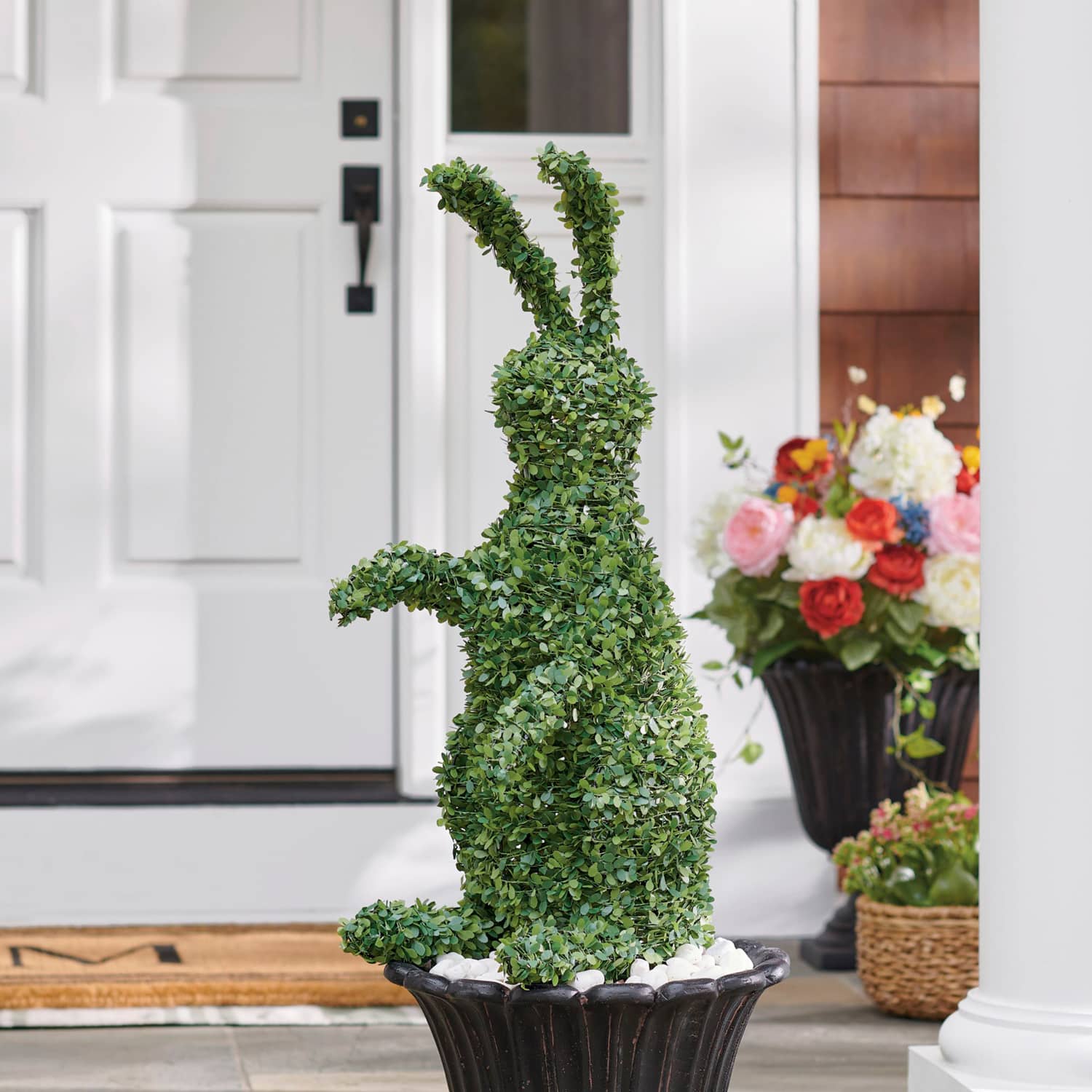 Whimsical Boxwood Bunny Topiary Urn Filler