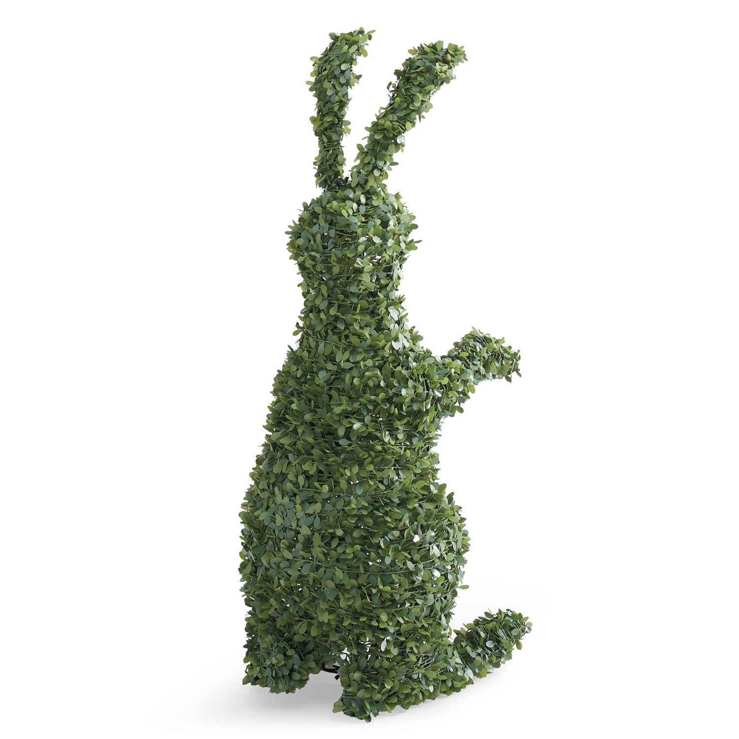 This cool new Boxwood Bunny is a nearly 3 foot tall faux boxwood topiary shaped like a whimsical bunny rabbit that can be used as an urn filler or staked down on the lawn - no pruning skills or watering required. The bunny shaped topiary is crafted from a sturdy wire form, lifelike materials that realistically mimic lush natural boxwood greenery, and includes an optional ground stake. Perfect for welcoming in Spring, celebrating the Easter holiday, or just because you have a thing for rabbits.