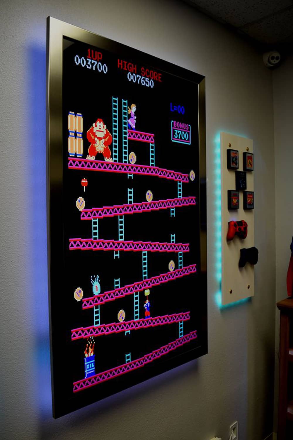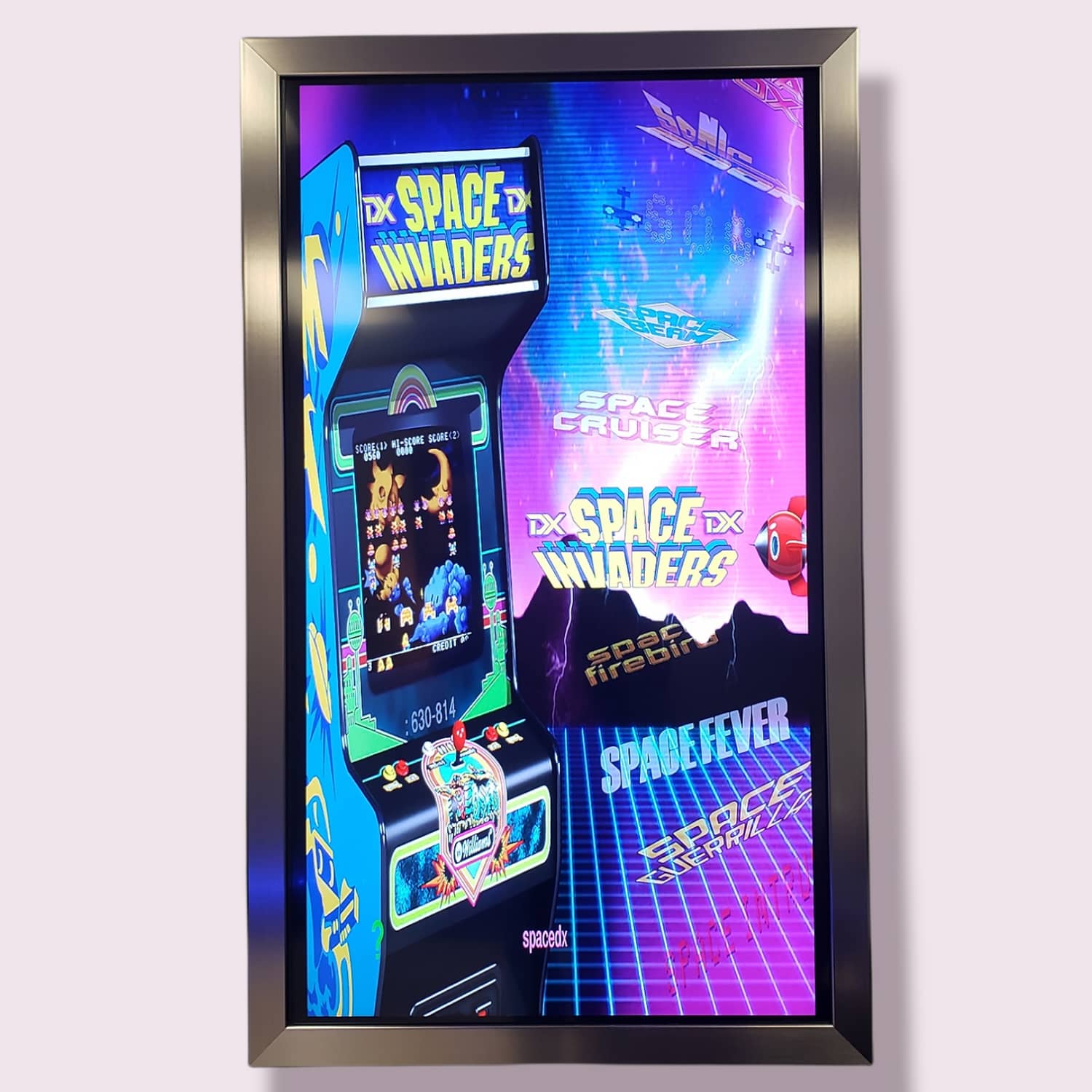 This cool new yet quite retro Digital Arcade Game Board is a wall-mounted arcade machine that's pre-loaded with over 800 classic coin-operated games and hangs on your wall like framed artwork. It features a 55" Samsung 4K LED panel that's wrapped in a real wood frame in either a black or stainless steel finish, a 4-core CPU, 32 GBs of storage, and an eye-catching backlight effect that's generated by a 16,000 color LED light strip. It also includes a wall mount and 2 wired or wireless controllers. Best of all, it kind of blends right in with most decor and doesn't take up a ton of space like other custom full-sized arcade cabinets do. Check out the videos below to see it in action. Cool, huh?