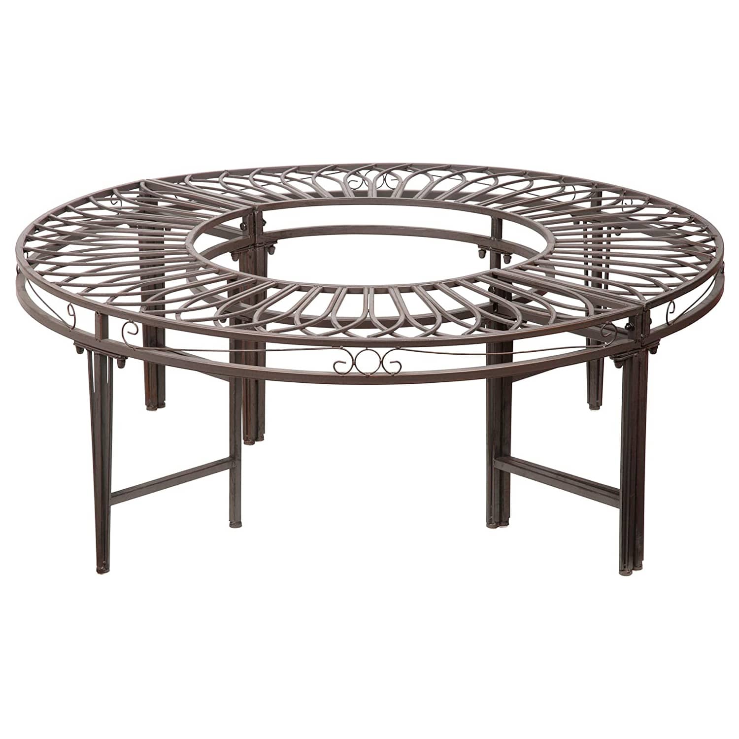 This cool new Roundabout Tree Bench is an architectural circular steel bench that wraps around a tree trunk to provide decorative outdoor seating with natural tree-canopy shade for up to four people. It features two curved sections ofrust-resistant, powder-coated tubular steel in an aged gray-brown finish and wraps around trunks less than 22 inches in diameter. Best of all, this unique 360 degree, tree-hugging bench always provides the best viewing angle to sit back, relax, and enjoy nature... except during lightning storms or an invasion of squirrels hurling acorns at you from above.