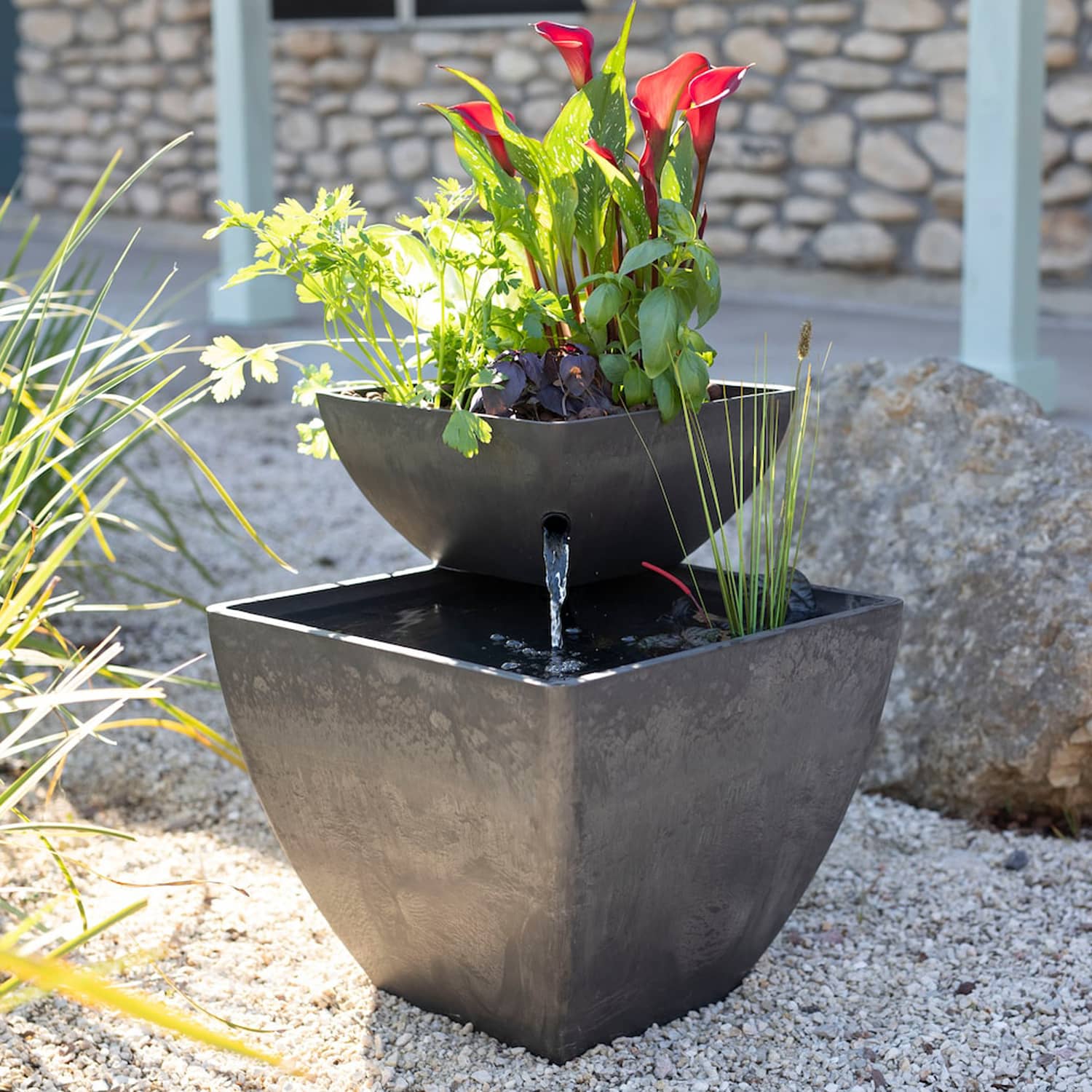 This cool new AquaSprouts Fountain Planter combines a tranquil water fountain and a soilless planter that can be used as a hydroponic or aquaponic system, a garden for water plants, or just a decorative and relaxing fountain for a patio, balcony, or deck. It's quite versatile. The grow bed planter and fountain reservoir are constructed from durable charcoal-colored polystone with natural stone-like variations and includes a submersible 160 gallon per hour pump with adjustable depth fittings and expanded clay ball growing media for the planter. All you need to supply is the water, the appropriate plants, and a little creativity.