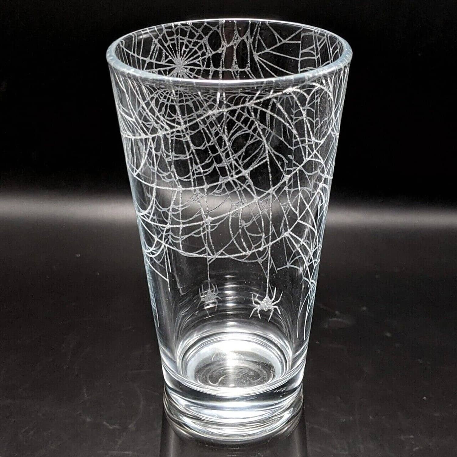 At your next Halloween bash, chug your favorite Oktoberfest-flavored beer or a pumpkin-spiced cocktail concoction from an appropriately themed pint glass like this cool new yet quite spooky Spider Webs Engraved Pint Glass from LumEngraved. This arachnophobia-inducing pint glass looks like it's filled with sticky spider webs and creepy spiders, but it's actually just a realistic engraving. Each glass is handcrafted in Colorado, USA.