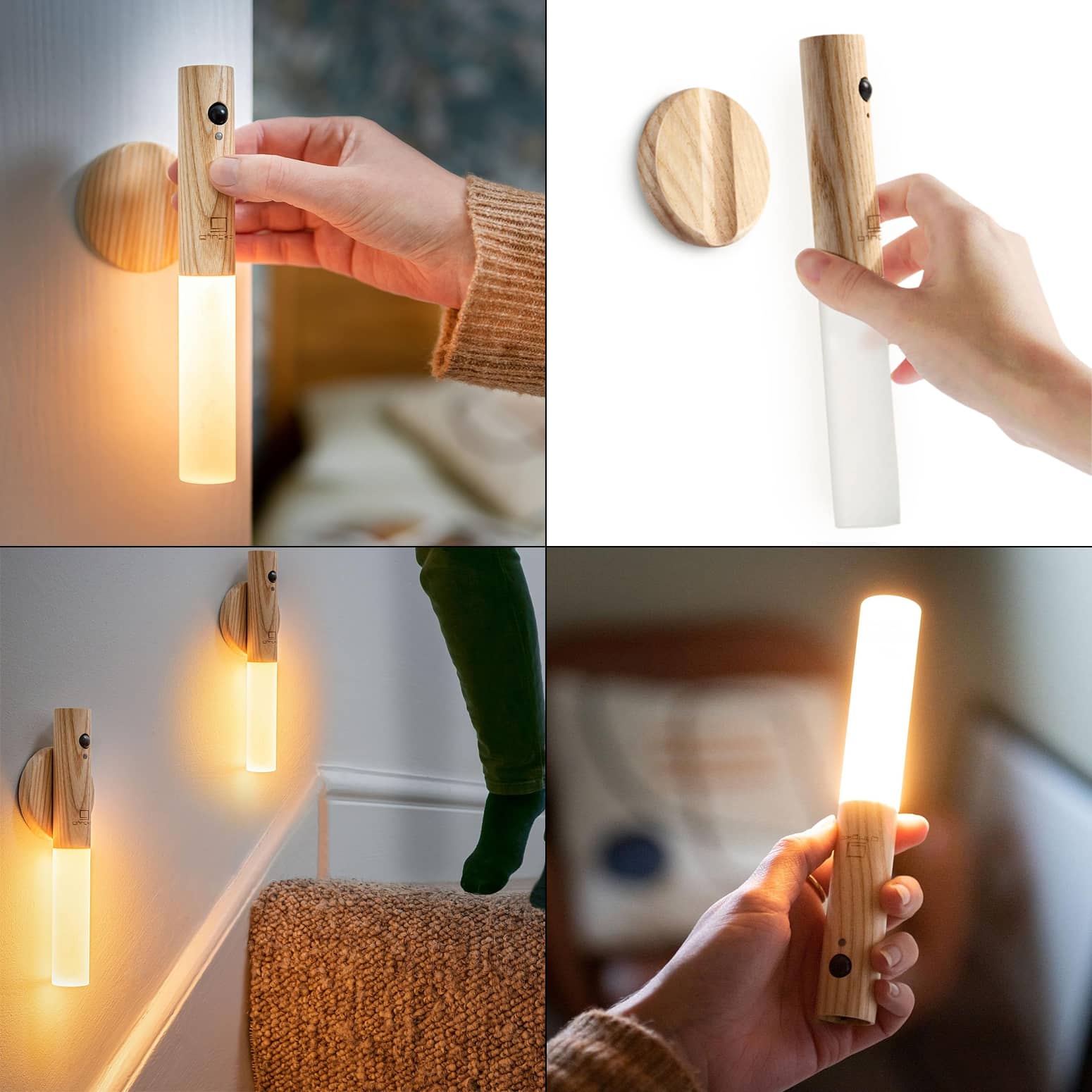 Need help finding the bathroom in the darkness or hear something go bump in the night? You'll always have a handy light ready to go and easy to spot with this cool new Gingko Smart Baton Light. This portable nightlight / modern day torch light attaches to its wall-mountable base via magnets and illuminates whenever it detects motion after dark. This handheld, baton-shaped LED light is handmade from white ash wood with frosted acrylic glass, charges up via USB, and can be placed just about anywhere you wish. It's perfect for illuminating bedrooms, bathrooms, hallways, stairwells, basements, cryptic tombs, and deep, dark dungeons or just keep it nearby during a power outage or on your nightstand if you're afraid of the dark. Check out the video below to see it in action.