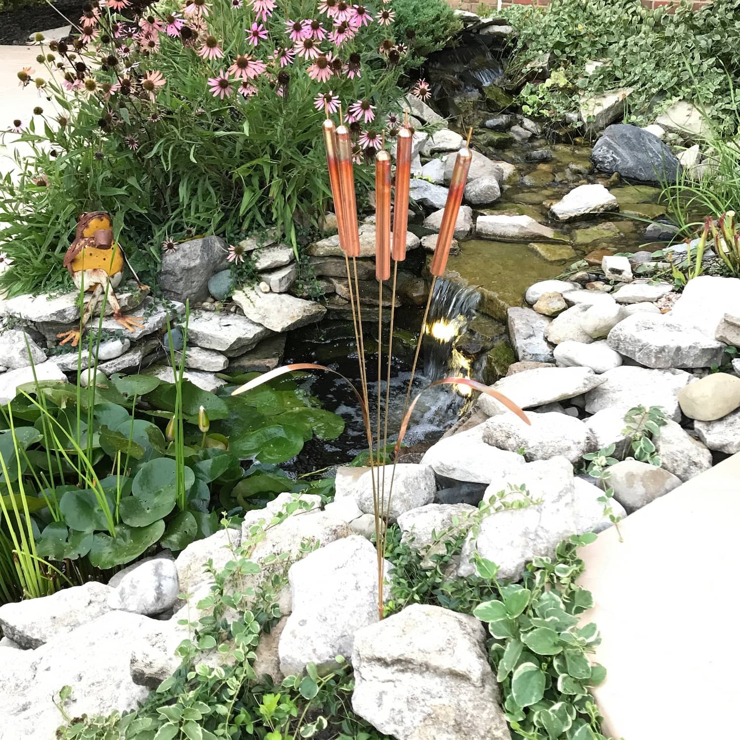 These cool new Copper Cattail Wind Chimes from Wind and Fire Chimes are handmade from long-lasting, high-quality copper and brass and peacefully chime as they sway in the breeze. They include a ground stake for securing into the ground around your home, patio, pond, or garden, have 5 chiming cattails and 2 leaves, include a handy sound adjuster, and are made in the USA. Best of all, these unique, double-take-inducing sculptural metal wind chimes don't look anything like traditional wind chimes and won't explode into a cottony fluff like the real ones do either. Check out the video below to see them in action.