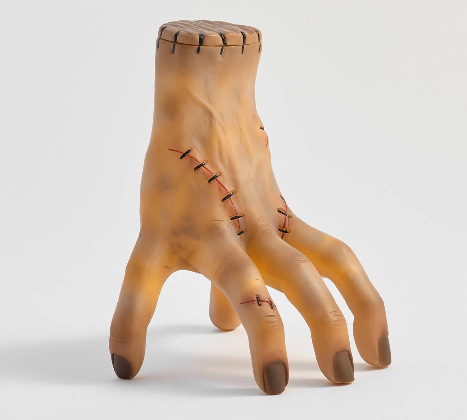 This Halloween or anytime if you're just a bit creepy, kooky, mysterious and spooky, or just altogether ooky, light up the darkness of your haunted home with this cool new Lit Thing from Pottery Barn. This replica of one of the most famous undead disembodied hands, Thing from the Addams Family spin-off TV series Wednesday, is an eerie nightlight that warmly illuminates from within via 56 LED lights. Unfortunately, this Thing is unable to snap twice or run around on its fingertips, but it may attract a real Thing out there that can. Hmm, there has to at least be two of them, right? βπ‘