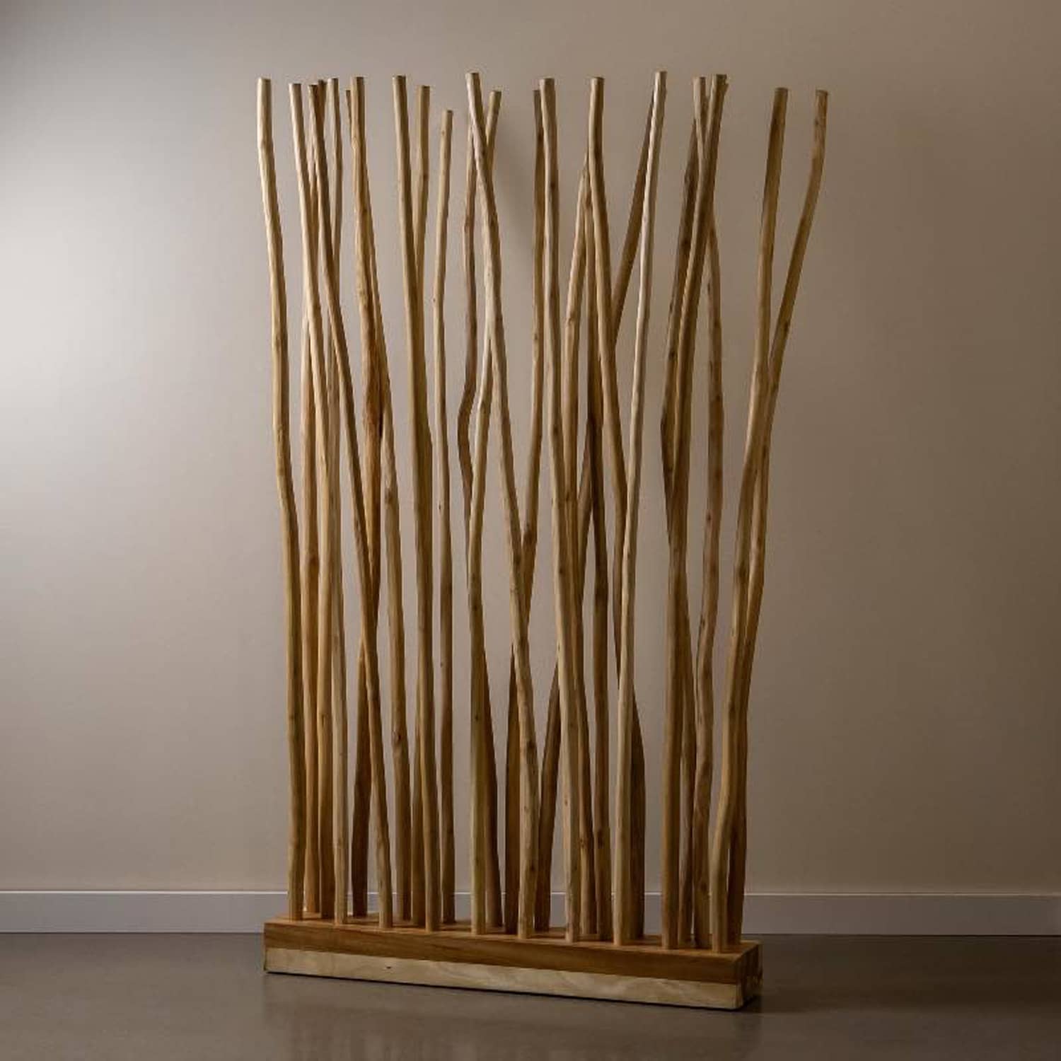 This cool new yet quite rustic Repurposed Teak Wood Partition is a handcrafted room divider / privacy screen made from natural teak branches that brings an interesting focal point to any living or office space. It can be placed individually or side-by-side with multiples to create an entire wall. Each piece is handmade by artisans in Indonesia and completely unique.