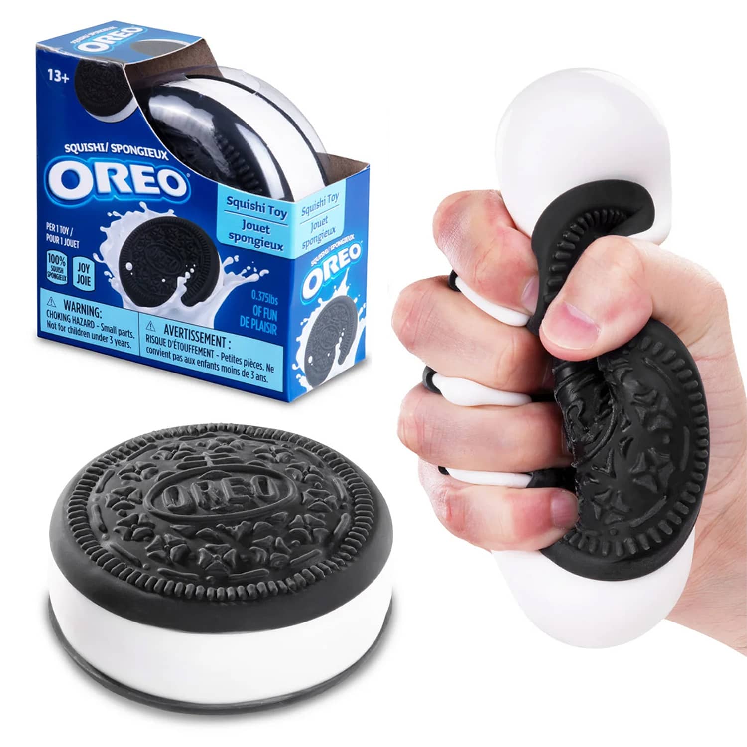 Normally, squeezing an OREO cookie in your hand when stressed out would result in a general mess, but not with this cool new OREO Squishy Toy. This giant oversized OREO cookie is 4X larger than a regular one, except this one replaces the two cocoa biscuits with rubber and the cream-filled center with ultra-satisfying squishy material that oozes out the sides when squeezed. Like any stress ball, this one, while tempting, is quite non-edible as well.